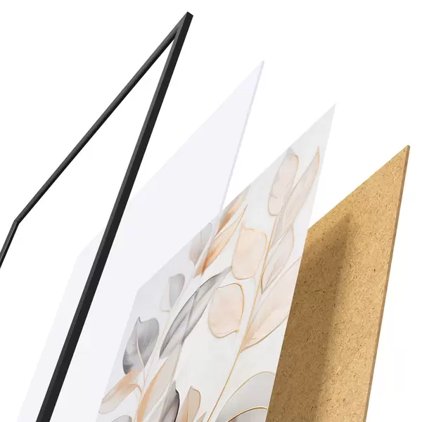 Das Poster besteht aus einem Rahmen, Plexiglas, einem gedruckten Bild und einer Rückwand aus Spanplatten. Dank der Halterungen auf der Rückseite kann das Poster sofort an die Wand gehängt werden.