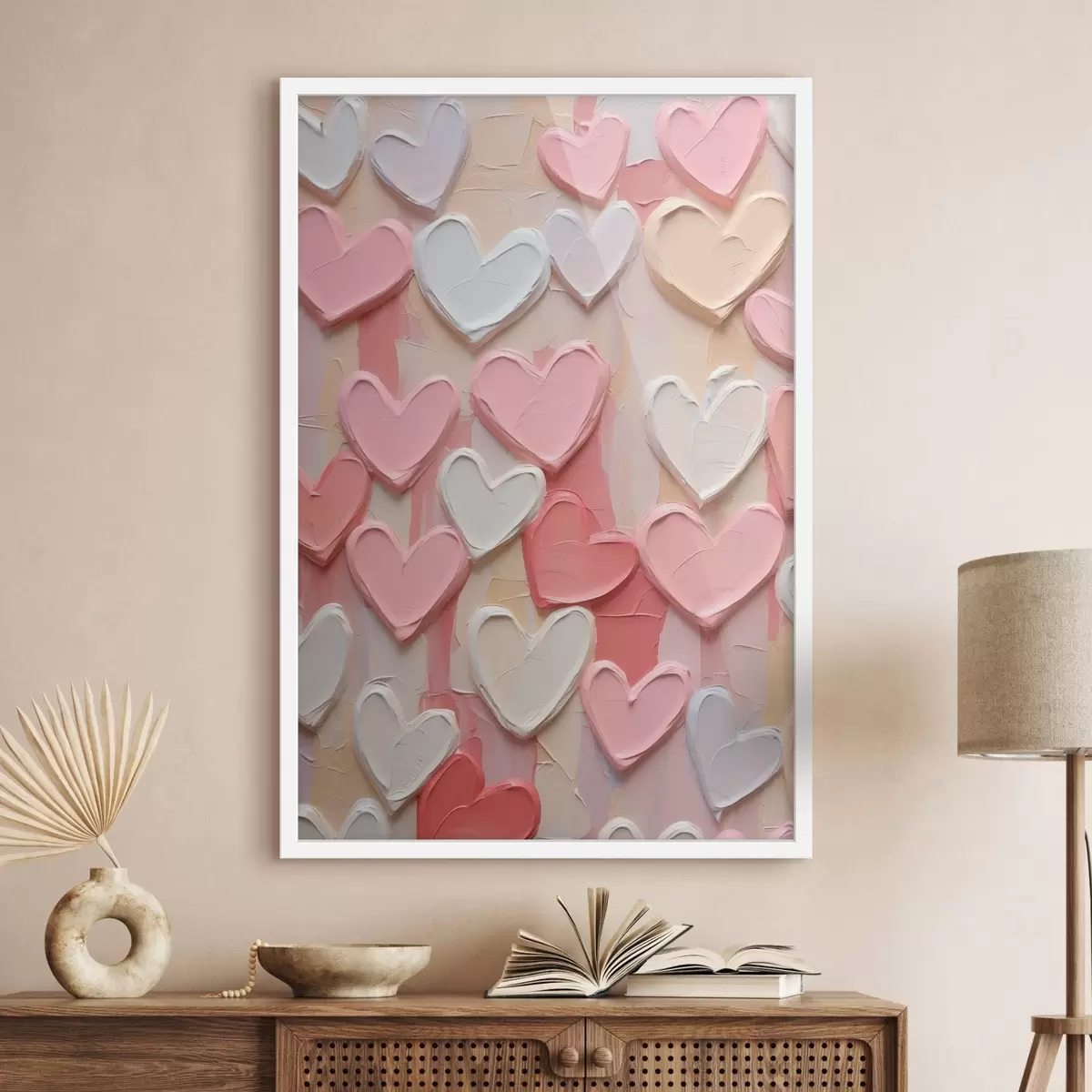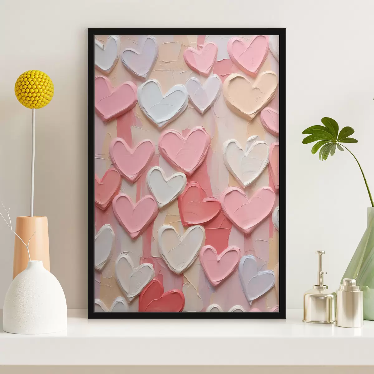 Poster Herzen in verschiedenen Pfirsich- und Rosatönen in einem strukturierten, gemalten Stil Nr f48751