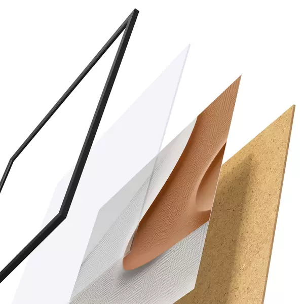 Das Poster besteht aus einem Rahmen, Plexiglas, einem gedruckten Bild und einer Rückwand aus Spanplatten. Dank der Halterungen auf der Rückseite kann das Poster sofort an die Wand gehängt werden.