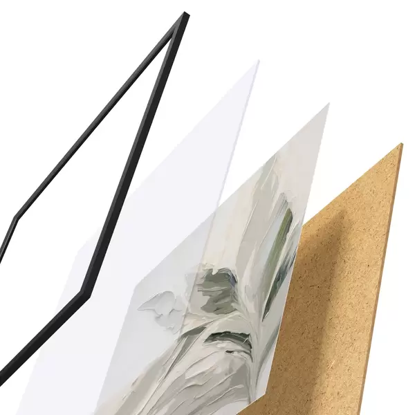 Das Poster besteht aus einem Rahmen, Plexiglas, einem gedruckten Bild und einer Rückwand aus Spanplatten. Dank der Halterungen auf der Rückseite kann das Poster sofort an die Wand gehängt werden.