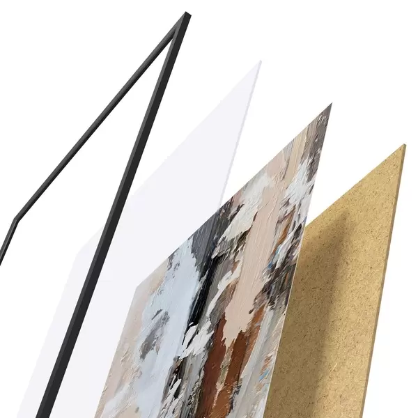 Das Poster besteht aus einem Rahmen, Plexiglas, einem gedruckten Bild und einer Rückwand aus Spanplatten. Dank der Halterungen auf der Rückseite kann das Poster sofort an die Wand gehängt werden.