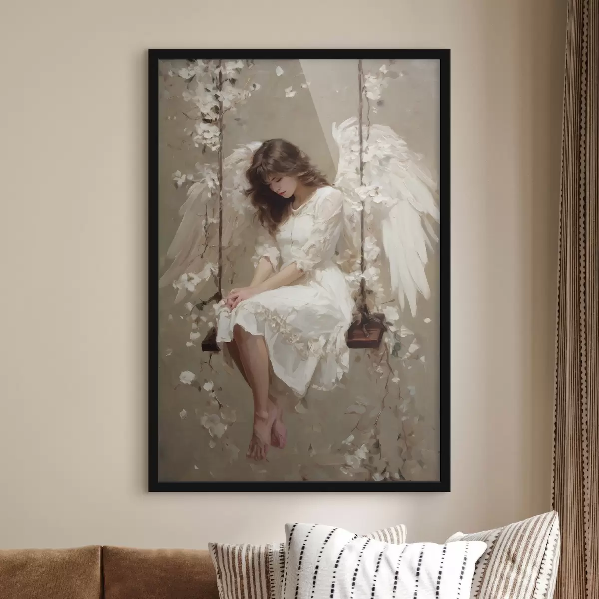 Poster ein Engel-Mädchen auf einer Schaukel, im Ölstil gemalt Nr f48789