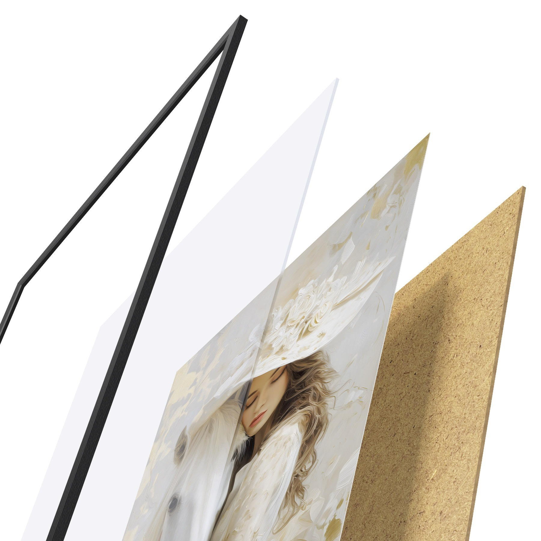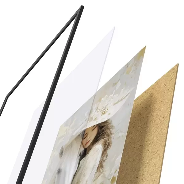Das Poster besteht aus einem Rahmen, Plexiglas, einem gedruckten Bild und einer Rückwand aus Spanplatten. Dank der Halterungen auf der Rückseite kann das Poster sofort an die Wand gehängt werden.