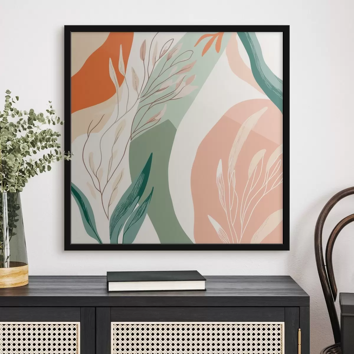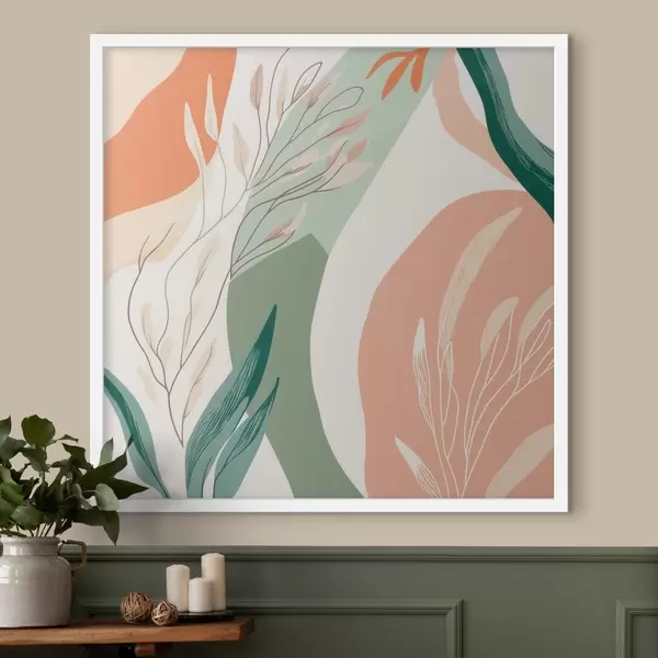 Poster Botanische Kunst mit weichen Formen in einer korallengrünen Farbpalette f48840