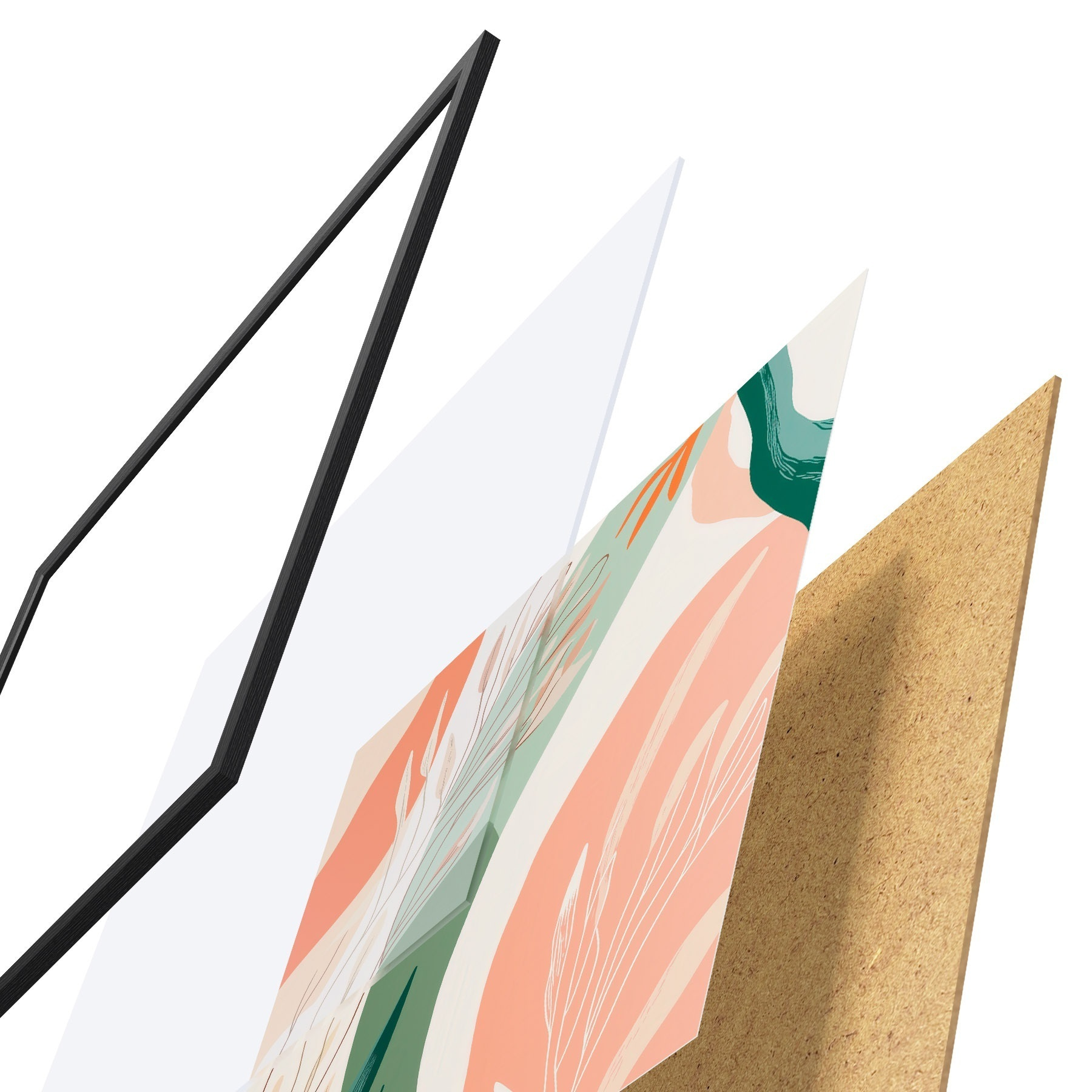 Das Poster besteht aus einem Rahmen, Plexiglas, einem gedruckten Bild und einer Rückwand aus Spanplatten. Dank der Halterungen auf der Rückseite kann das Poster sofort an die Wand gehängt werden.