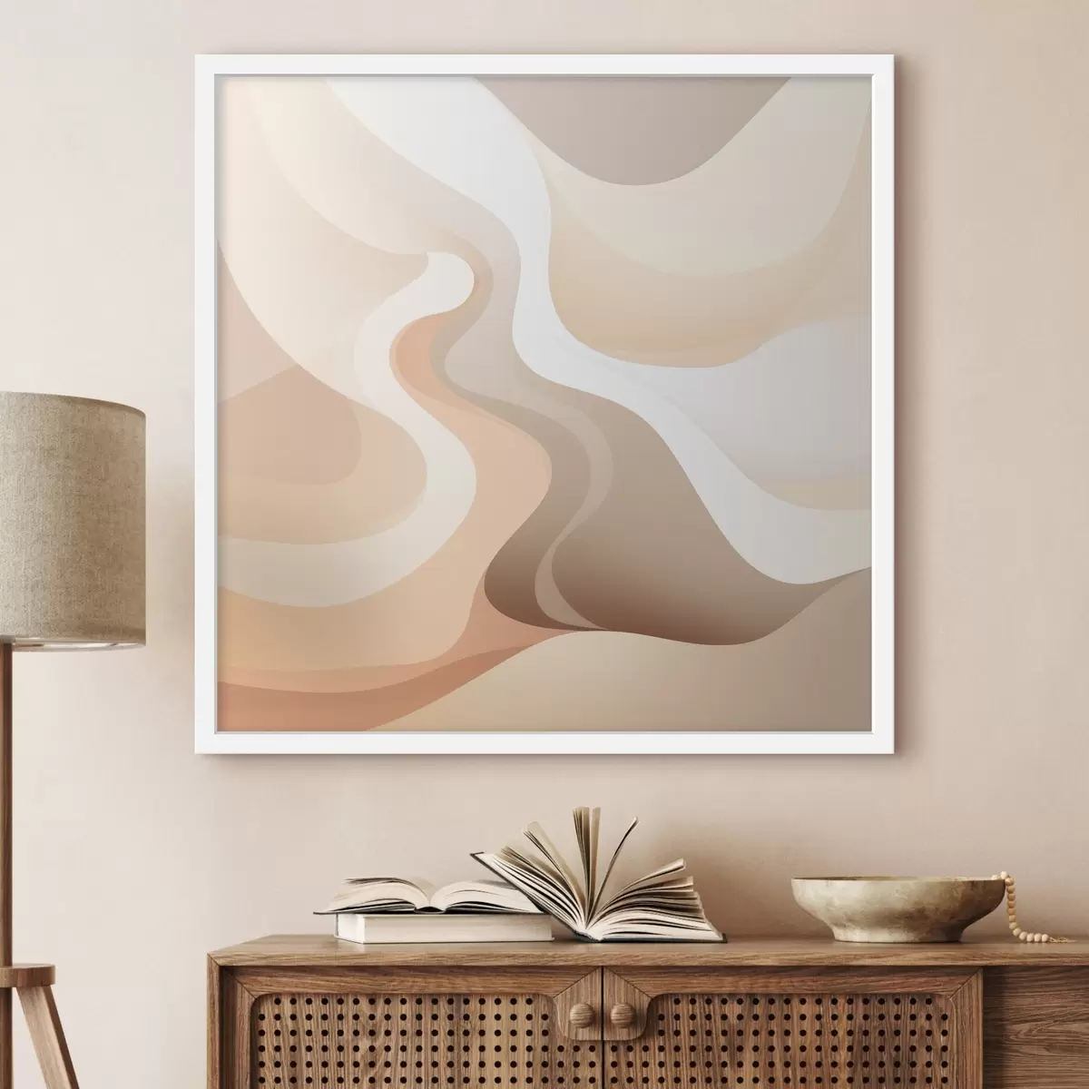 Poster Ein harmonisches Zusammenspiel aus geschwungenen Formen und cremefarbenen Tönen im Stil zeitgenössischer Kunstillustrationen f48846