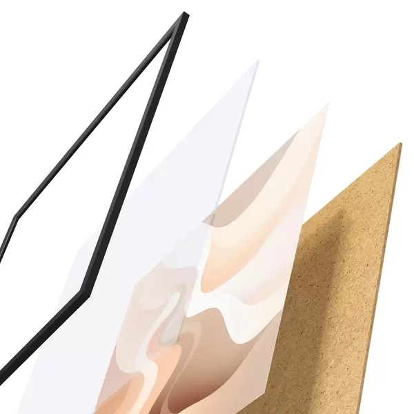 Das Poster besteht aus einem Rahmen, Plexiglas, einem gedruckten Bild und einer Rückwand aus Spanplatten. Dank der Halterungen auf der Rückseite kann das Poster sofort an die Wand gehängt werden.