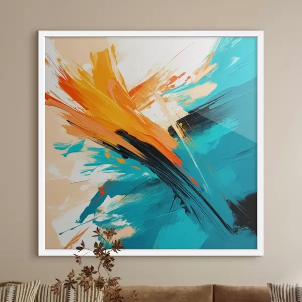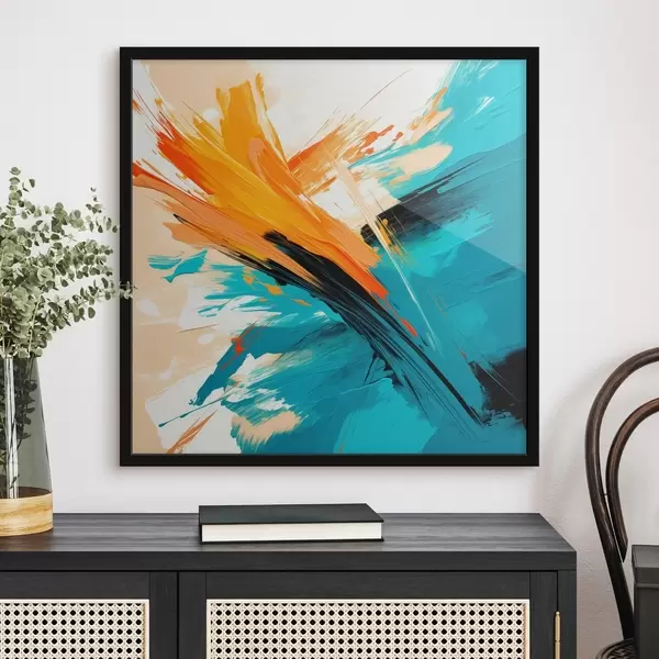 Poster Ein ausdrucksstarkes Bild in einer Farbpalette aus Türkis und Terrakotta, gehalten in einem zeitgenössischen Malstil f48855