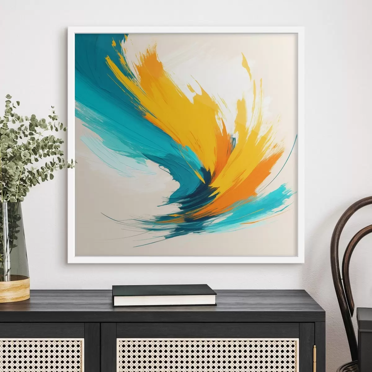 Poster Ein dynamischer Wirbel in Gelb- und Blautönen in einem zeitgenössischen Malstil Nr f48856