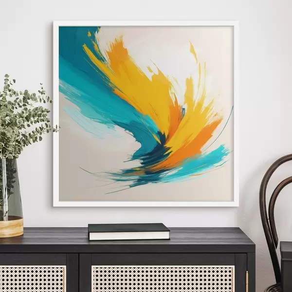 Poster Ein dynamischer Wirbel in Gelb- und Blautönen in einem zeitgenössischen Malstil f48856