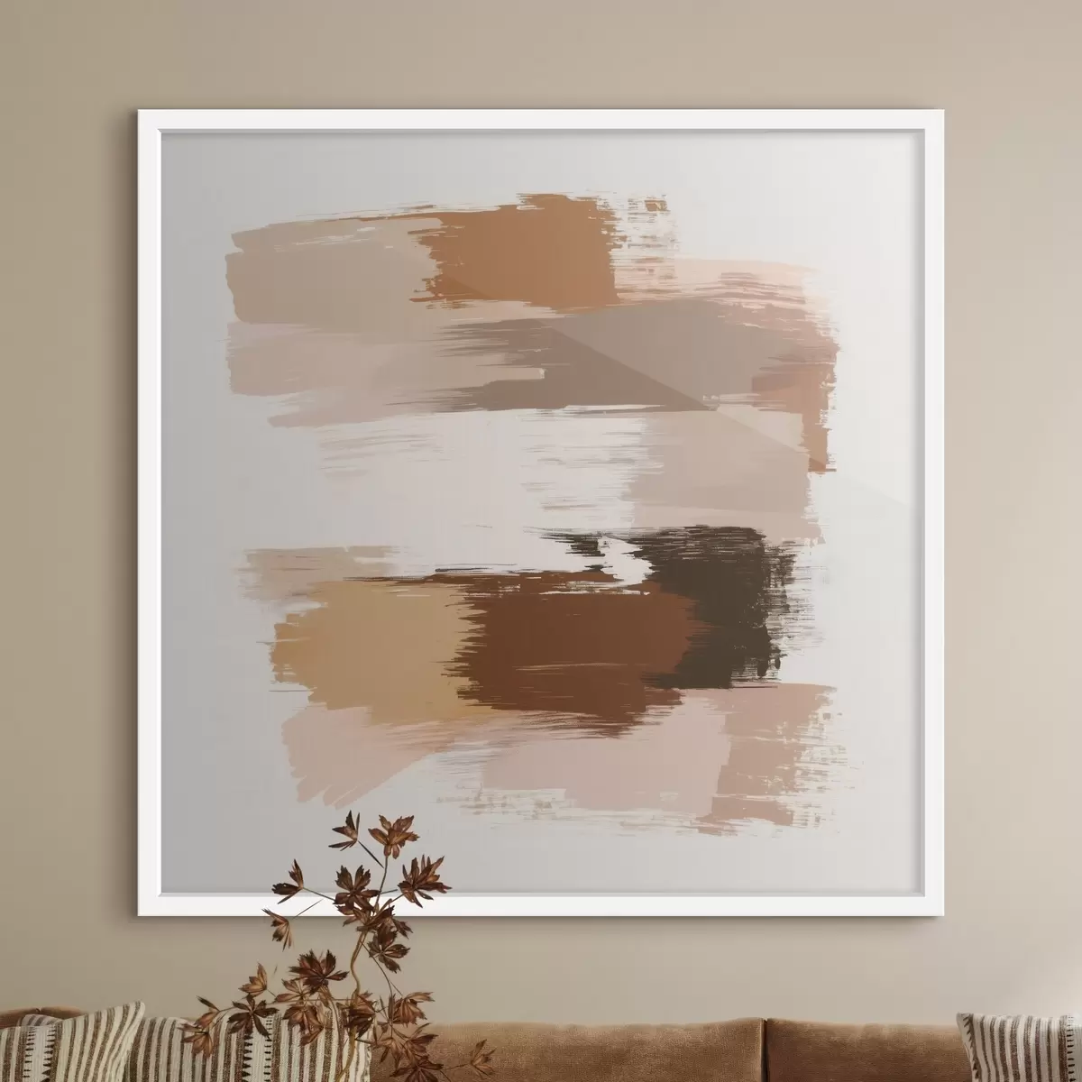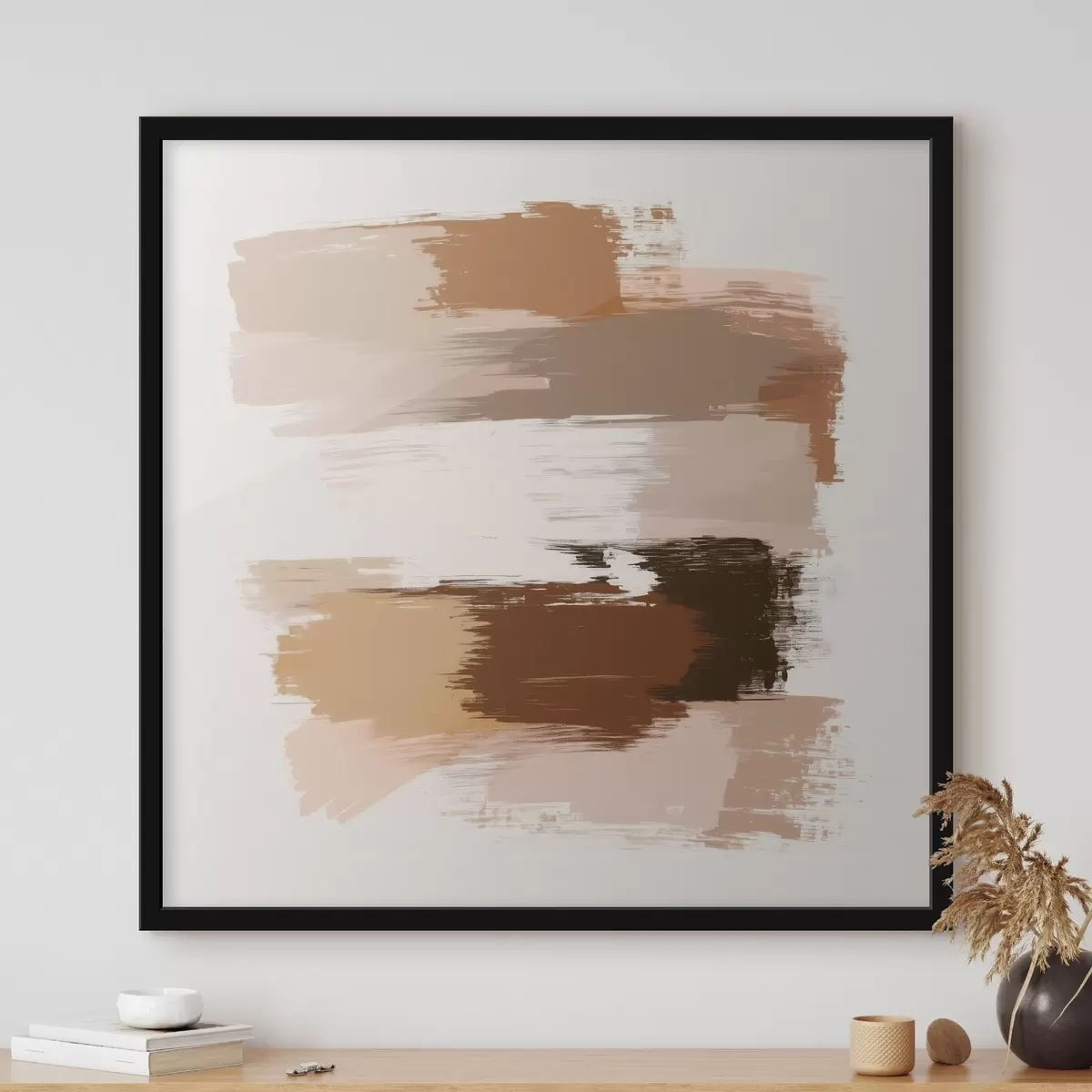 Poster Minimalistische Szene mit horizontalen Pinselstrichen in Kaffee- und Terrakottatönen Nr f48858