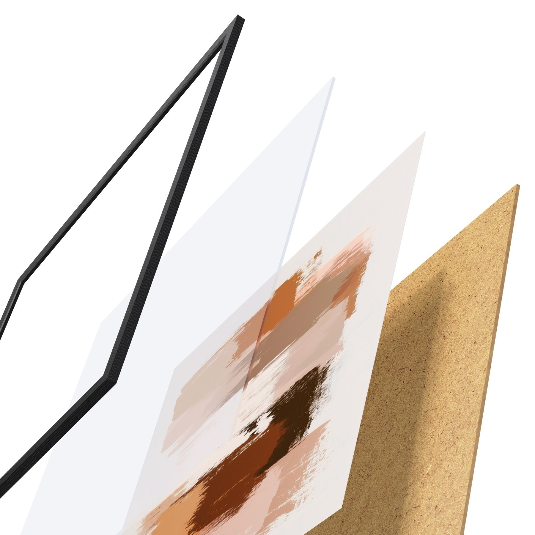 Das Poster besteht aus einem Rahmen, Plexiglas, einem gedruckten Bild und einer Rückwand aus Spanplatten. Dank der Halterungen auf der Rückseite kann das Poster sofort an die Wand gehängt werden.