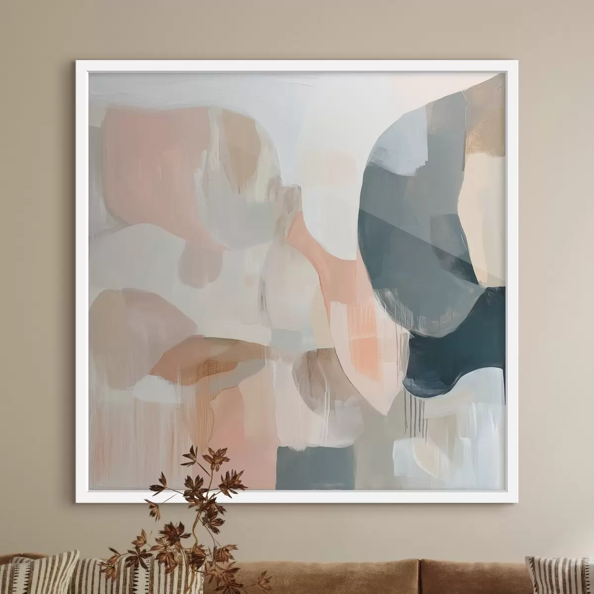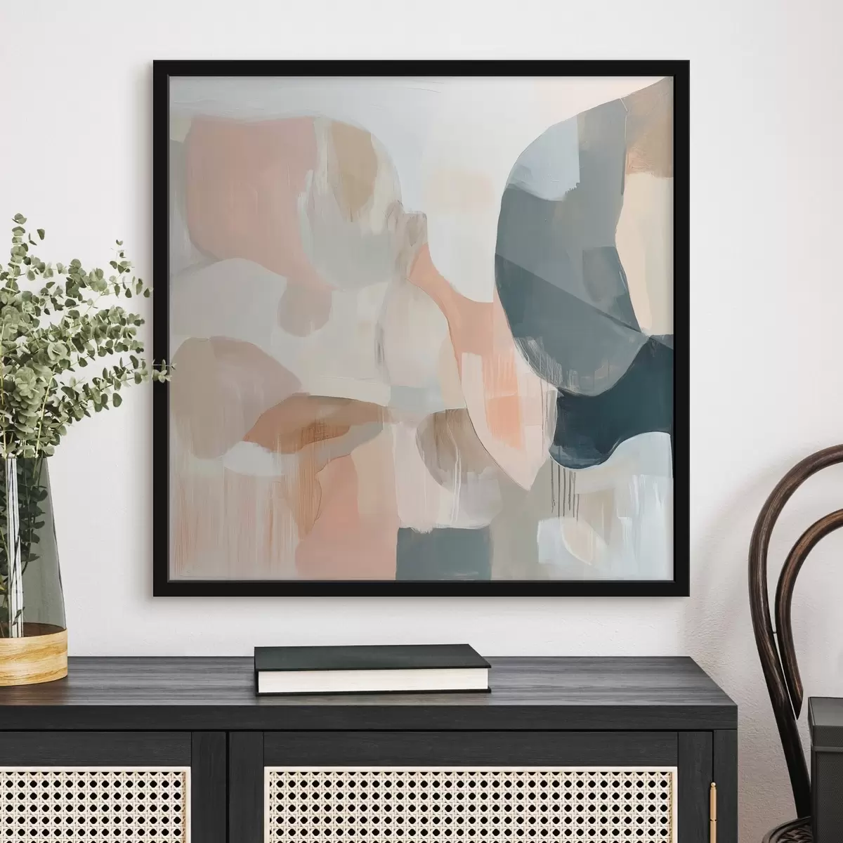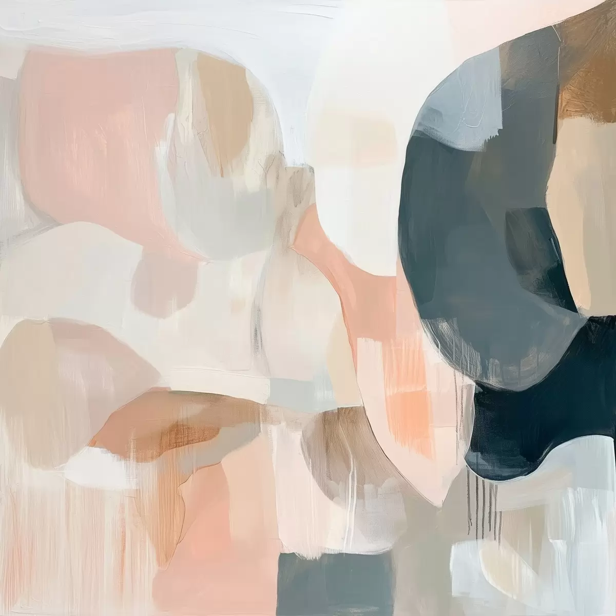 Poster Abstrakte Komposition in Pastell- und Dunkelblautönen in einem zeitgenössischen Malstil f48860