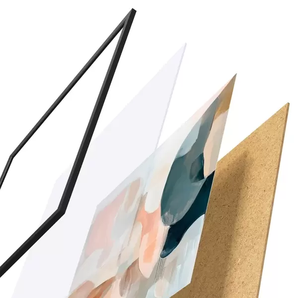 Das Poster besteht aus einem Rahmen, Plexiglas, einem gedruckten Bild und einer Rückwand aus Spanplatten. Dank der Halterungen auf der Rückseite kann das Poster sofort an die Wand gehängt werden.