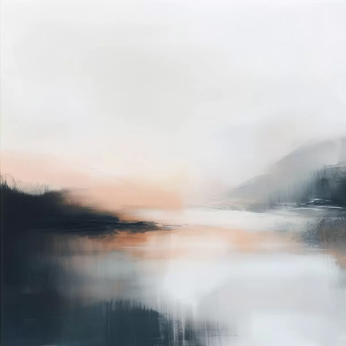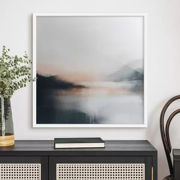 Poster Abstrakte, neblige Landschaft in einer warmen Beige-Korallen-Farbpalette Nr f48861