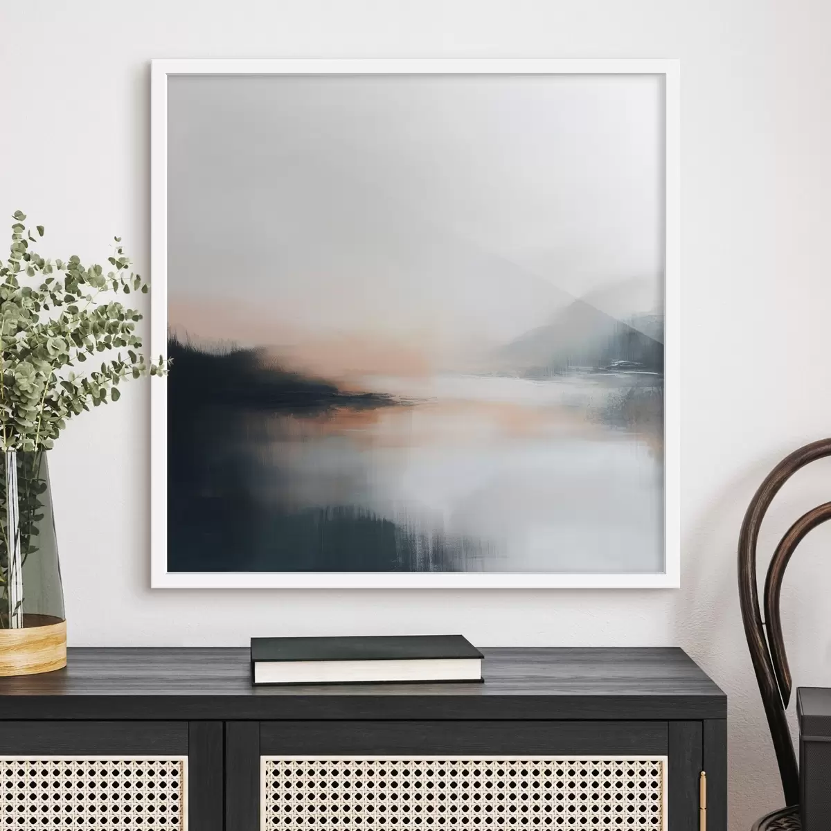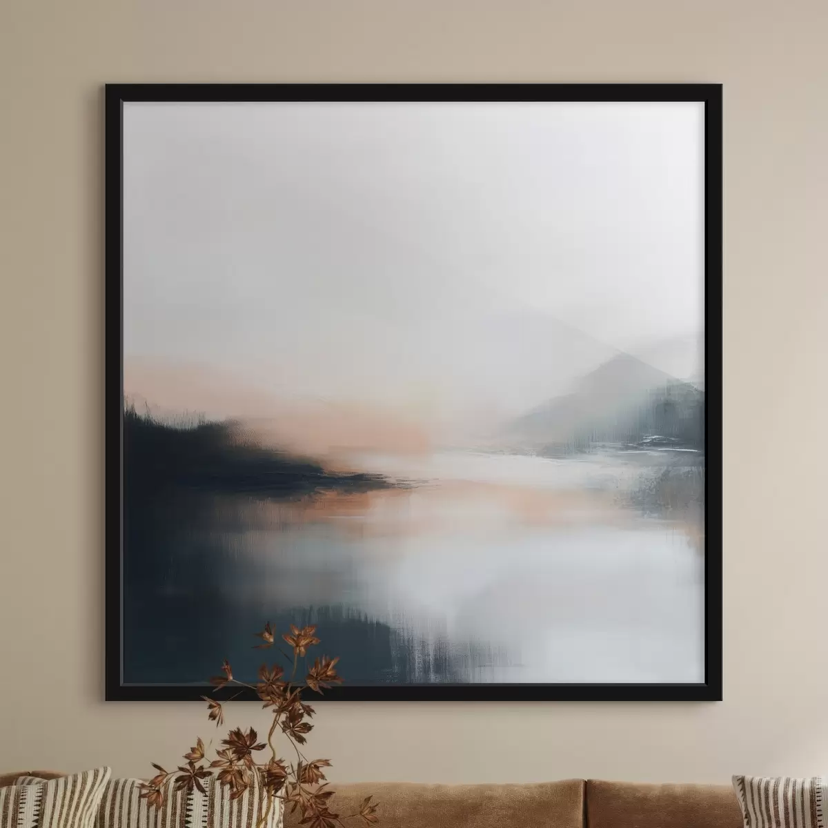 Poster Abstrakte, neblige Landschaft in einer warmen Beige-Korallen-Farbpalette f48861