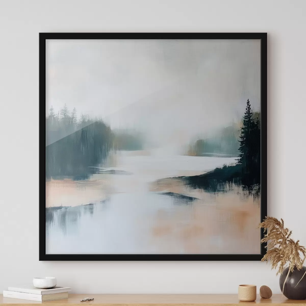 Poster Abstrakte Waldlandschaft in Rosa- und Blautönen in einem zeitgenössischen Malstil Nr f48862