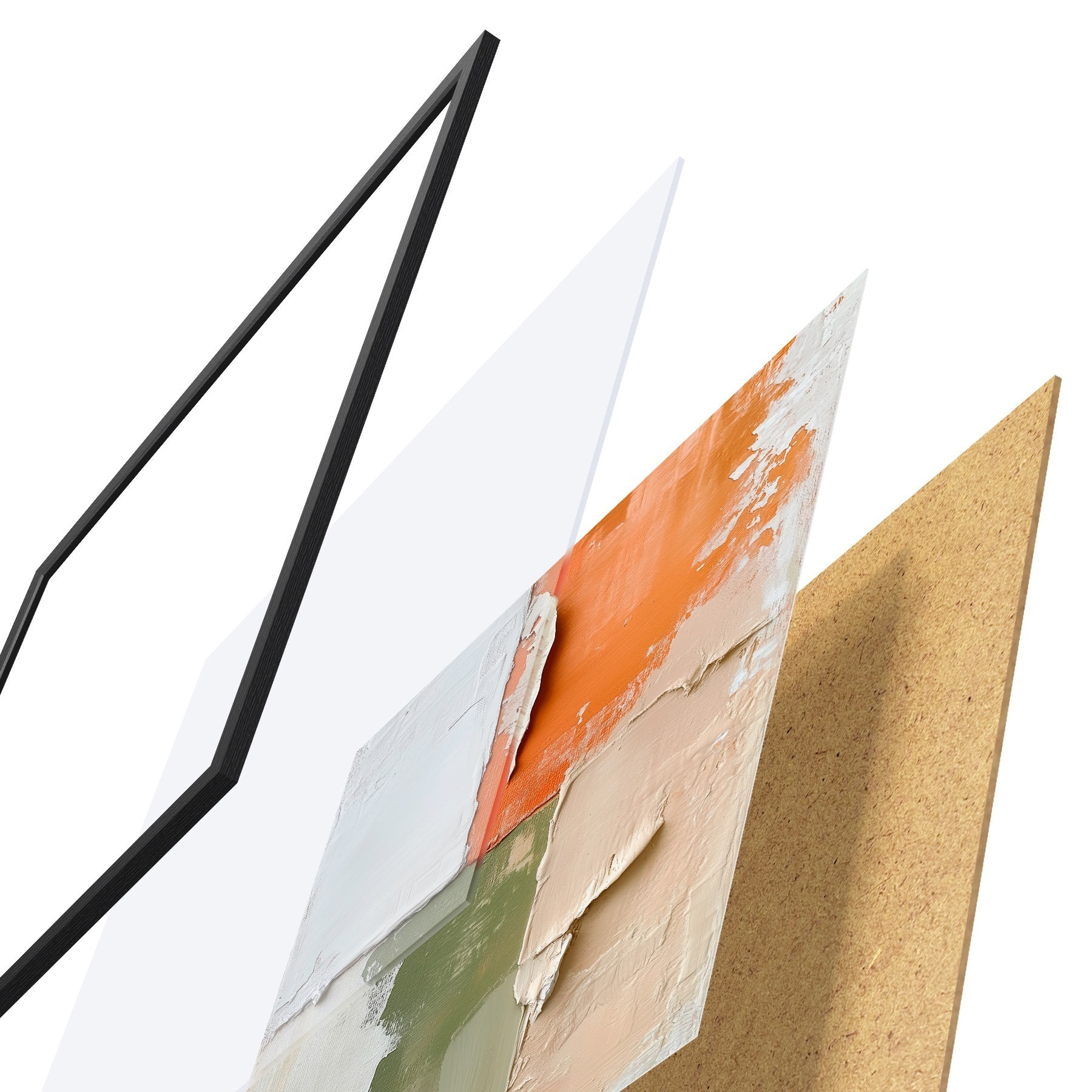 Das Poster besteht aus einem Rahmen, Plexiglas, einem gedruckten Bild und einer Rückwand aus Spanplatten. Dank der Halterungen auf der Rückseite kann das Poster sofort an die Wand gehängt werden.