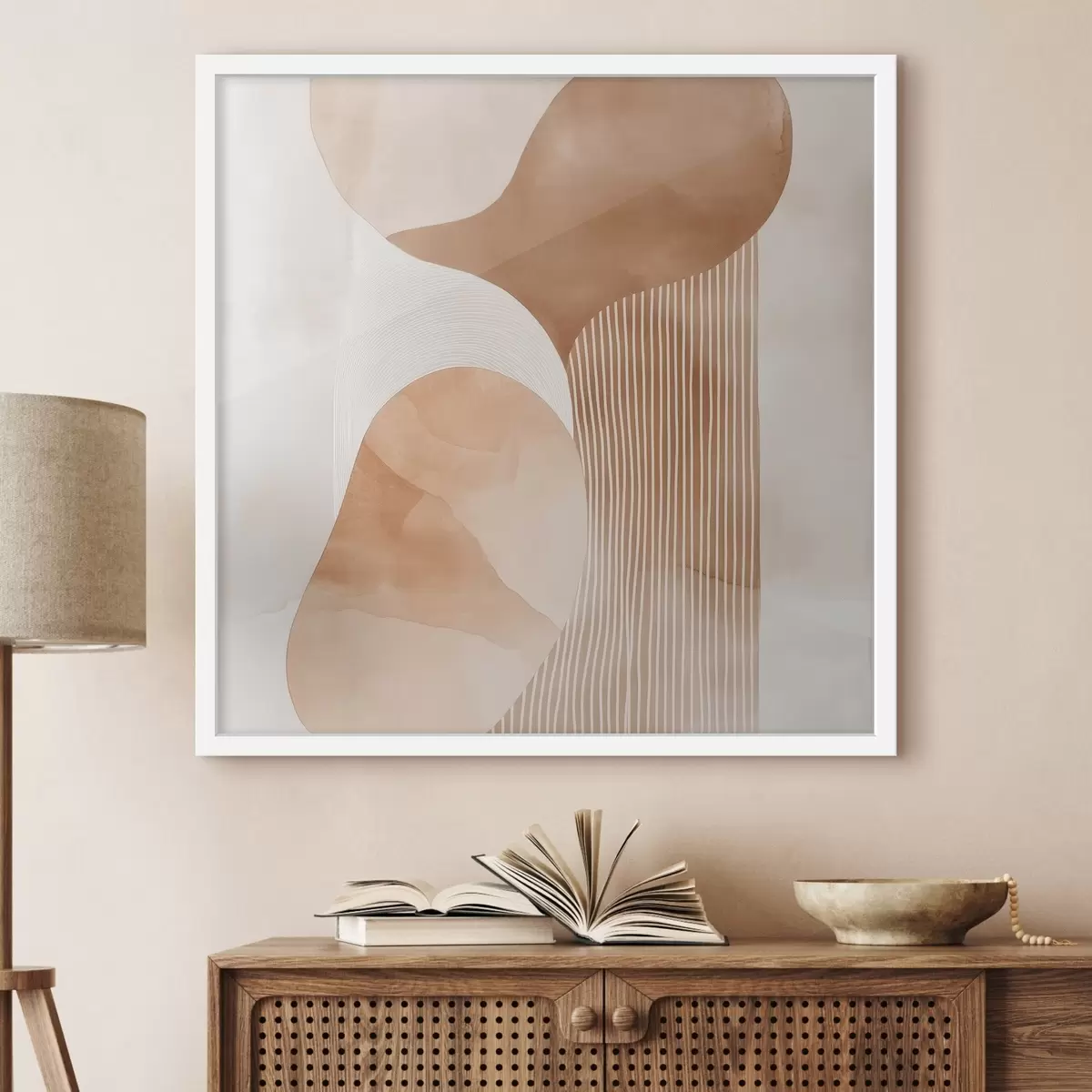 Poster Dekorative Kunst in einer warmen Beige-Korallen-Farbpalette mit Aquarelleffekt Nr f48870
