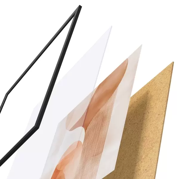 Das Poster besteht aus einem Rahmen, Plexiglas, einem gedruckten Bild und einer Rückwand aus Spanplatten. Dank der Halterungen auf der Rückseite kann das Poster sofort an die Wand gehängt werden.