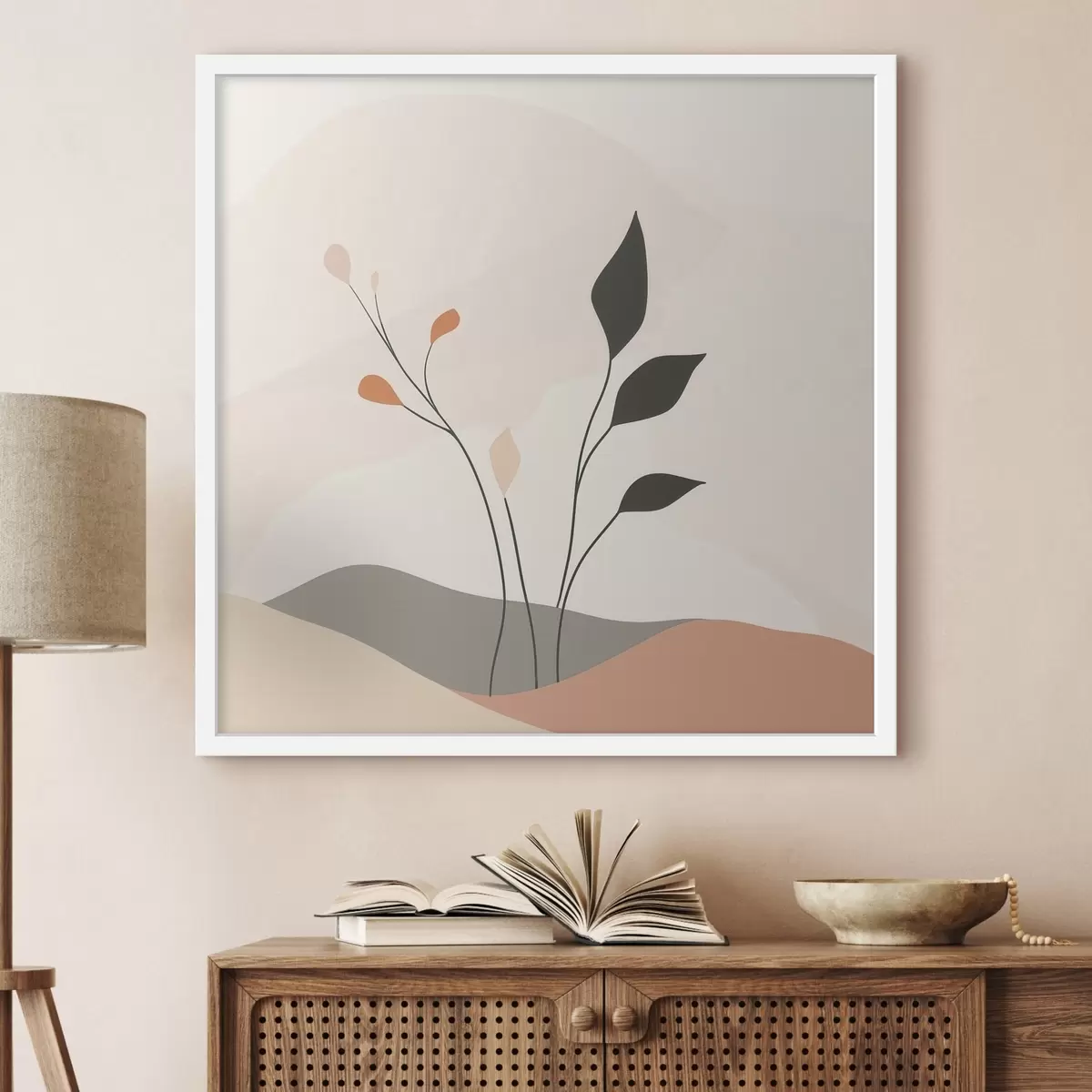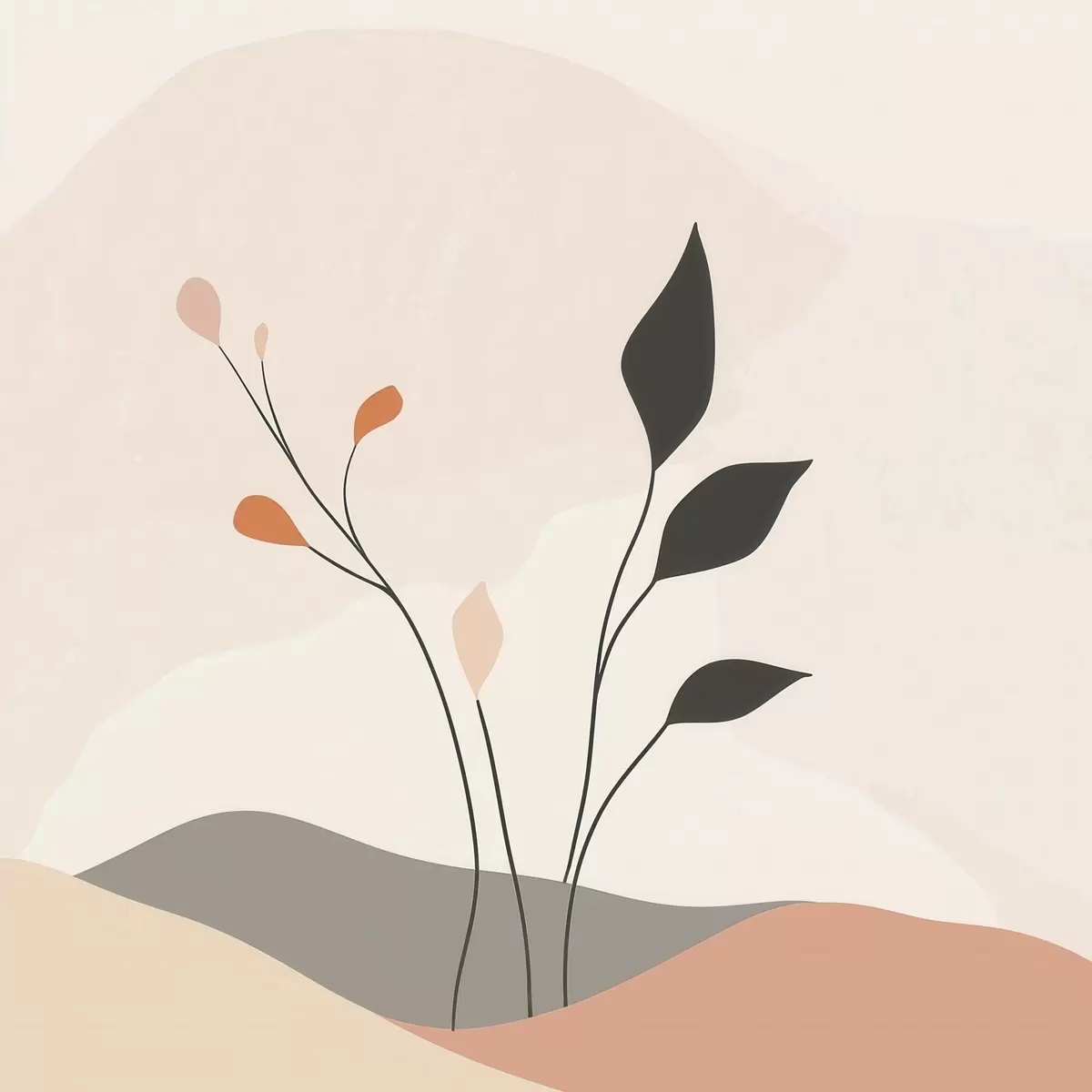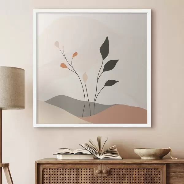 Poster Lakonische Szene mit Pflanzenmotiven und organischen Formen im Stil der zeitgenössischen Kunst Nr f48874