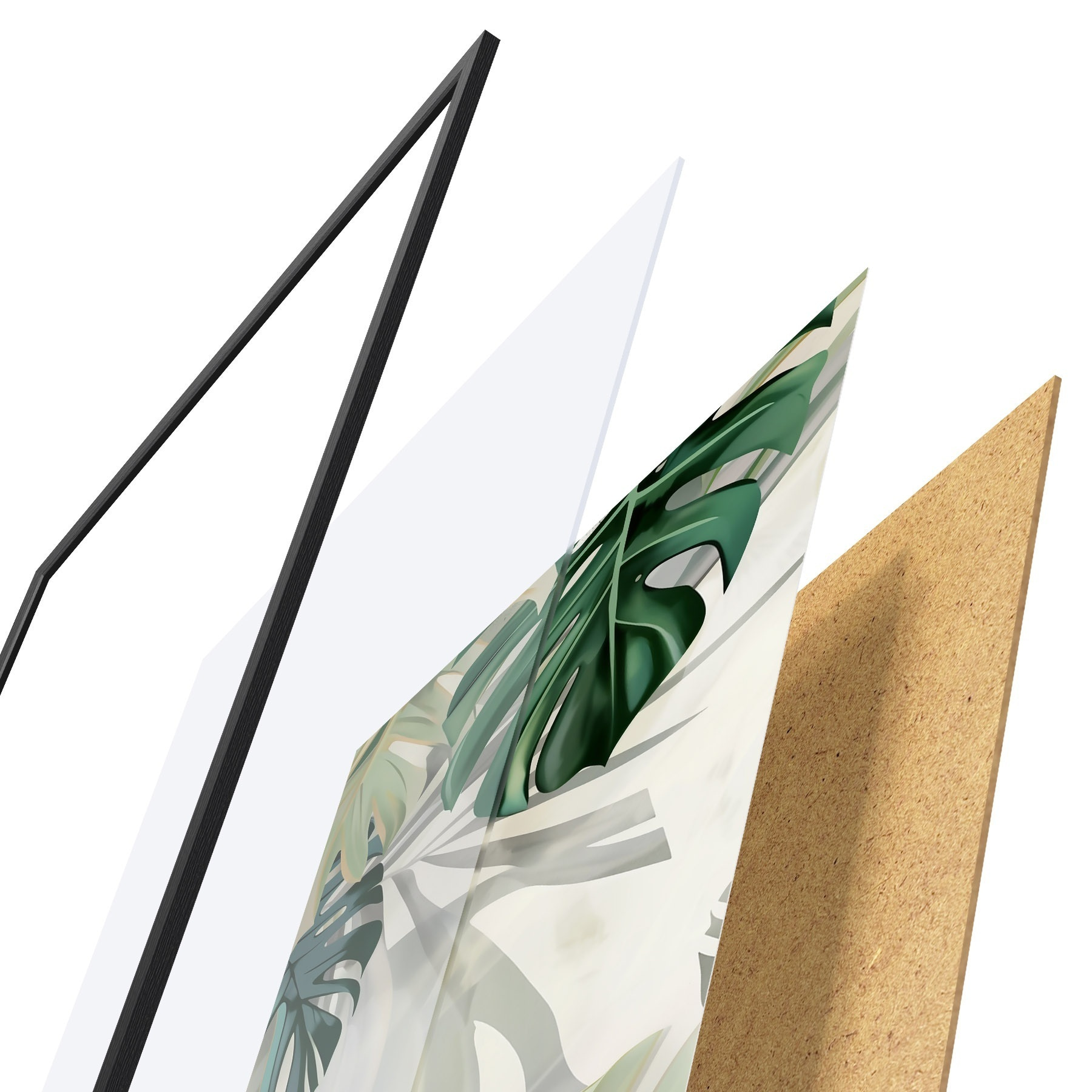 Das Poster besteht aus einem Rahmen, Plexiglas, einem gedruckten Bild und einer Rückwand aus Spanplatten. Dank der Halterungen auf der Rückseite kann das Poster sofort an die Wand gehängt werden.