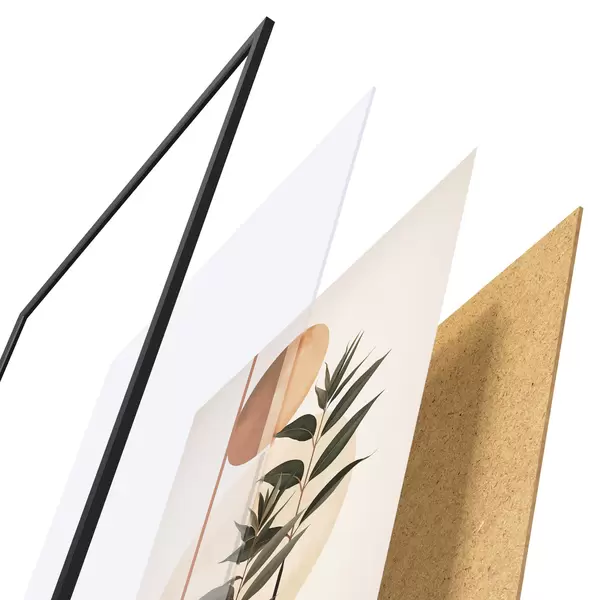 Das Poster besteht aus einem Rahmen, Plexiglas, einem gedruckten Bild und einer Rückwand aus Spanplatten. Dank der Halterungen auf der Rückseite kann das Poster sofort an die Wand gehängt werden.