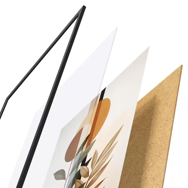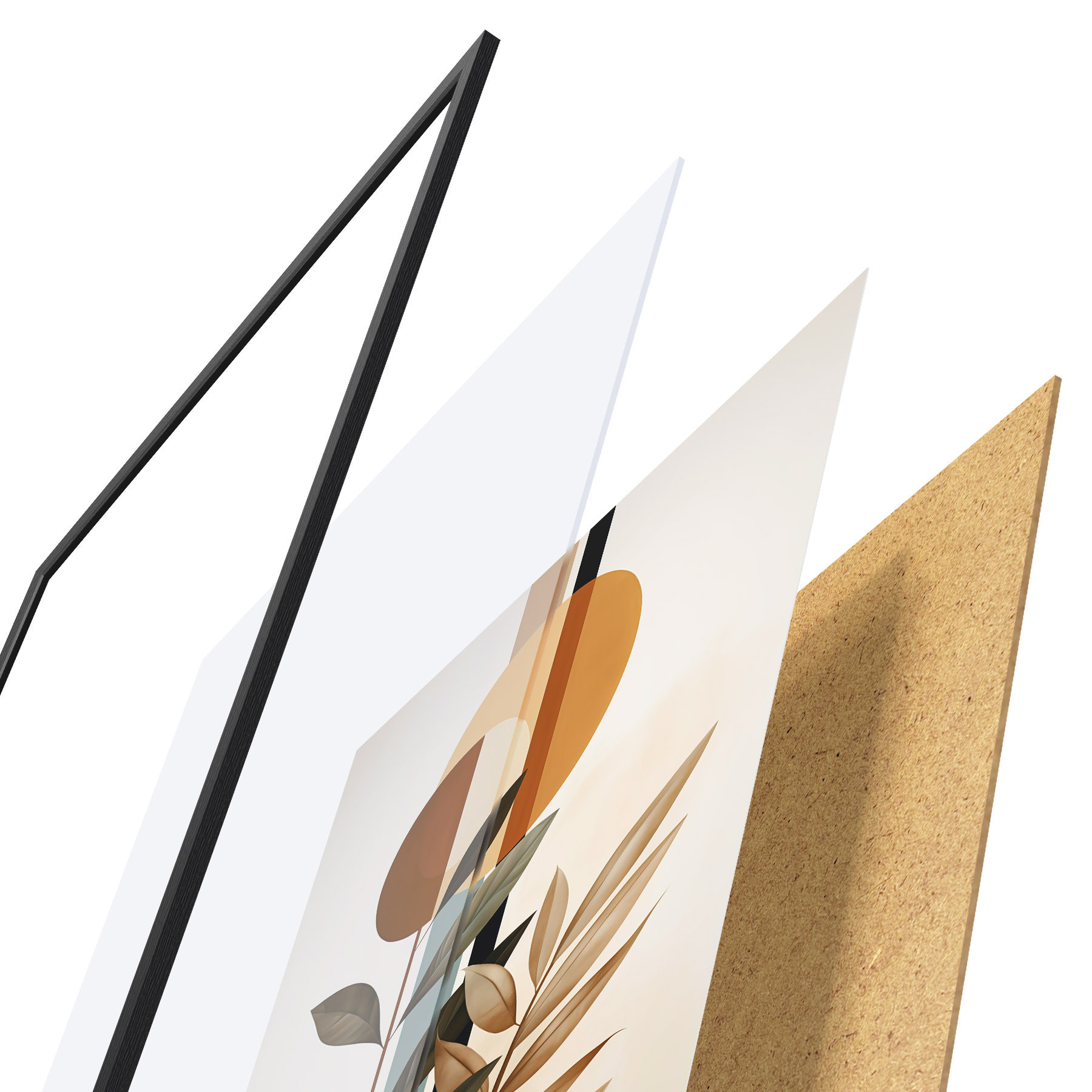 Das Poster besteht aus einem Rahmen, Plexiglas, einem gedruckten Bild und einer Rückwand aus Spanplatten. Dank der Halterungen auf der Rückseite kann das Poster sofort an die Wand gehängt werden.