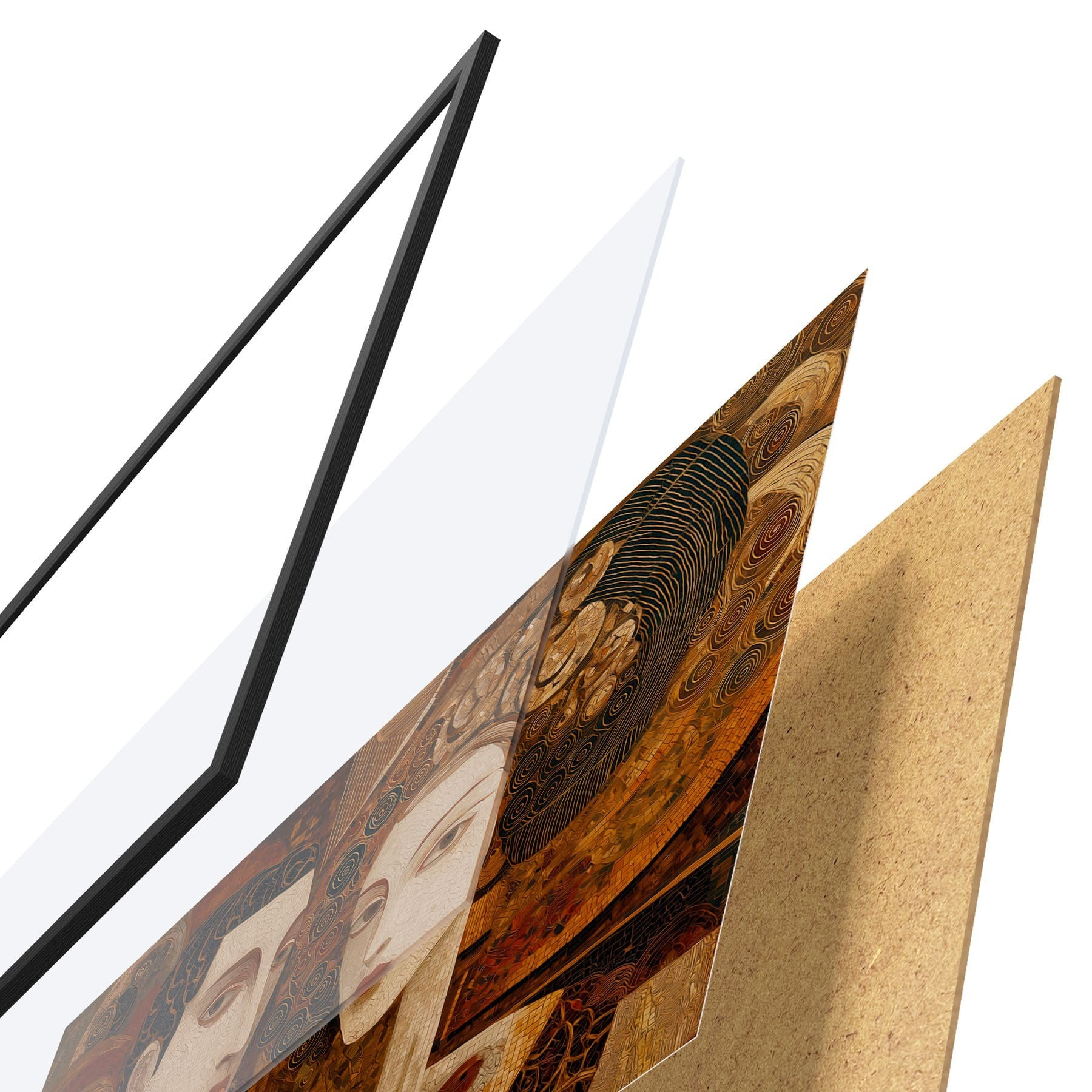 Das Poster besteht aus einem Rahmen, Plexiglas, einem gedruckten Bild und einer Rückwand aus Spanplatten. Dank der Halterungen auf der Rückseite kann das Poster sofort an die Wand gehängt werden.