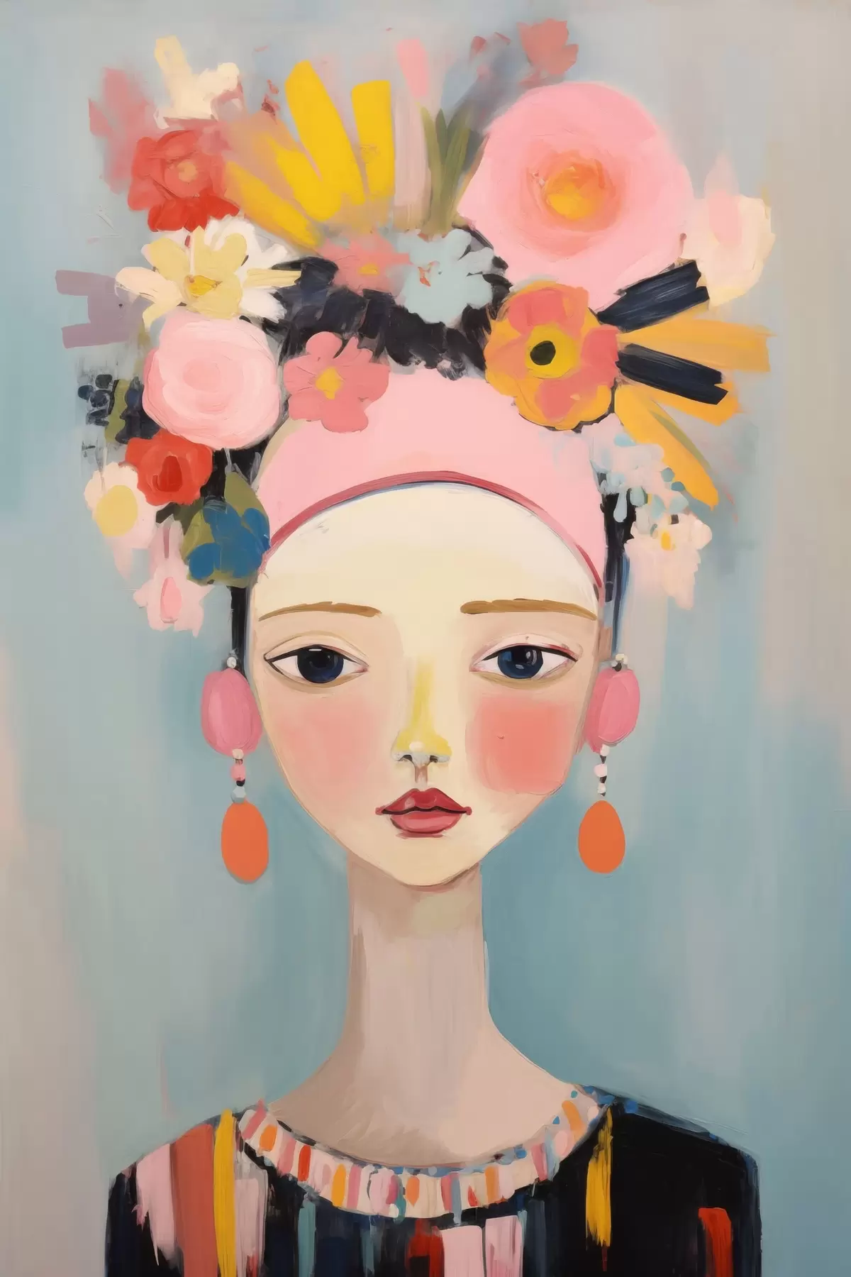 Poster Porträt einer Frau mit Blumen im Haar, im abstrakten Stil Nr f48936