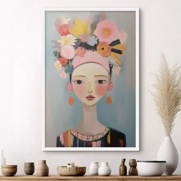 Poster Porträt einer Frau mit Blumen im Haar, im abstrakten Stil f48936