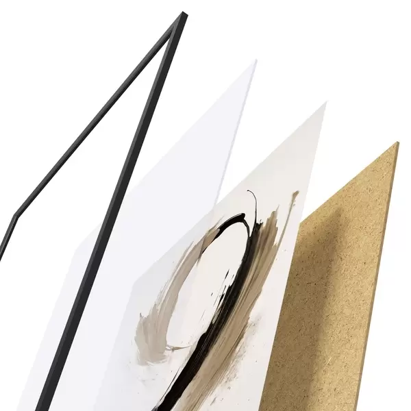 Das Poster besteht aus einem Rahmen, Plexiglas, einem gedruckten Bild und einer Rückwand aus Spanplatten. Dank der Halterungen auf der Rückseite kann das Poster sofort an die Wand gehängt werden.
