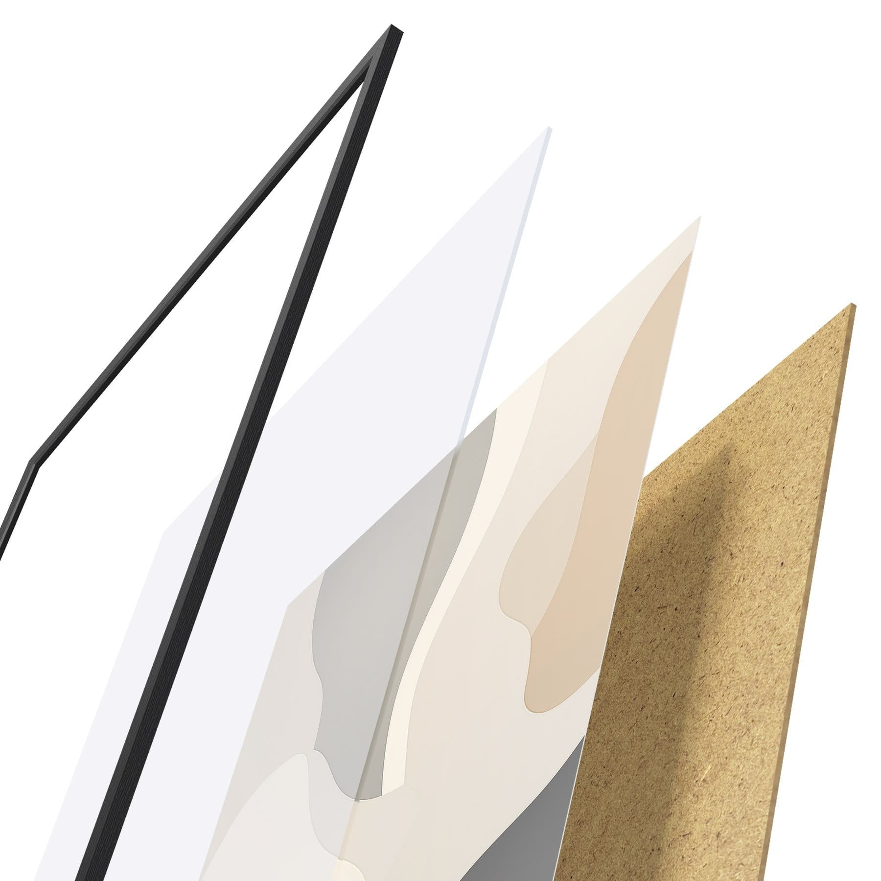 Das Poster besteht aus einem Rahmen, Plexiglas, einem gedruckten Bild und einer Rückwand aus Spanplatten. Dank der Halterungen auf der Rückseite kann das Poster sofort an die Wand gehängt werden.
