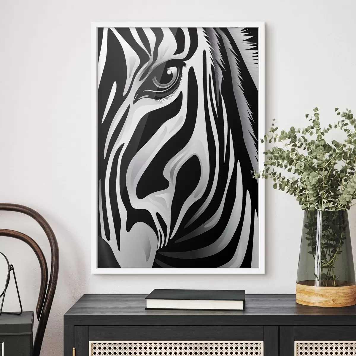 Das Poster besteht aus einem Rahmen, Plexiglas, einem gedruckten Bild und einer Rückwand aus Spanplatten. Dank der Halterungen auf der Rückseite kann das Poster sofort an die Wand gehängt werden.