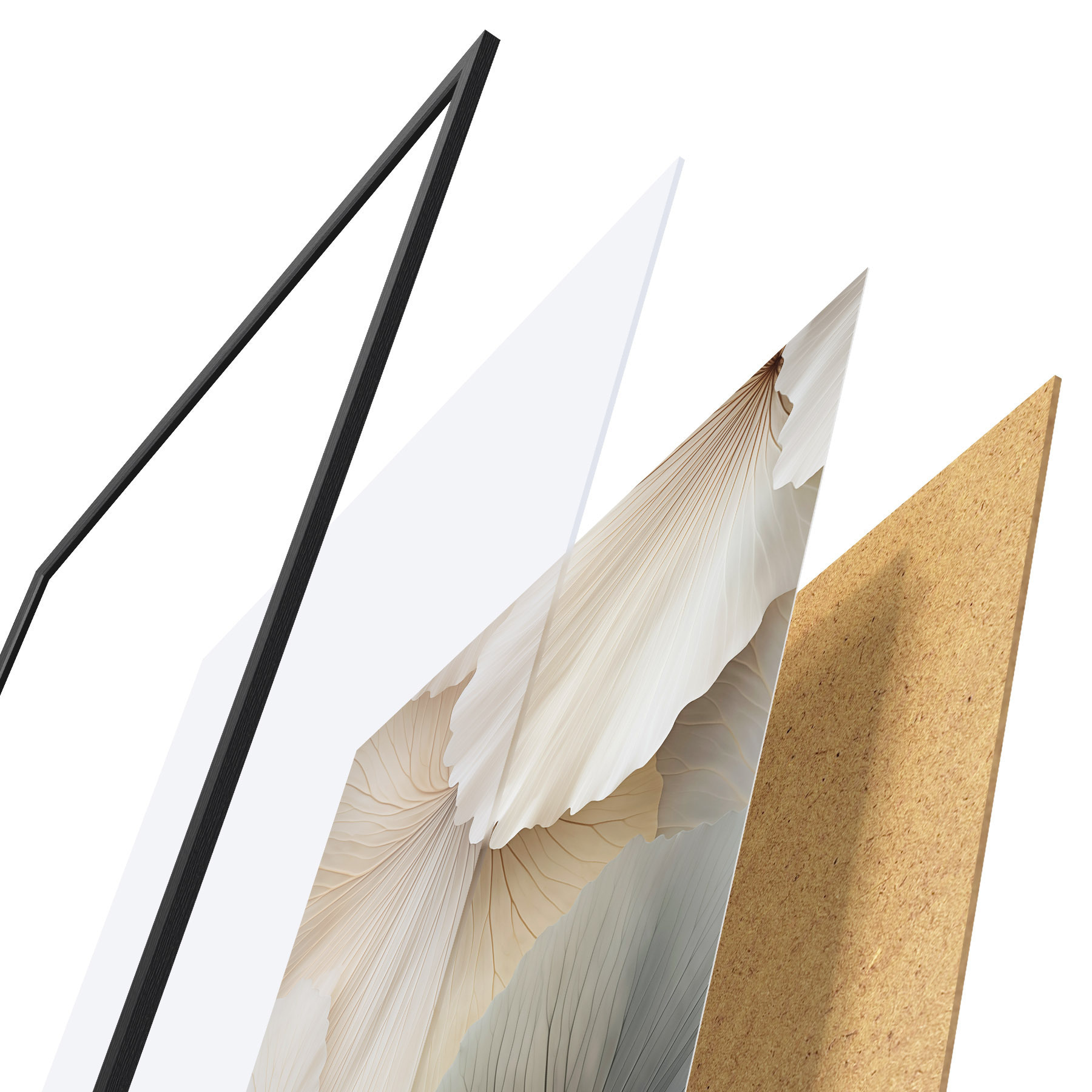 Das Poster besteht aus einem Rahmen, Plexiglas, einem gedruckten Bild und einer Rückwand aus Spanplatten. Dank der Halterungen auf der Rückseite kann das Poster sofort an die Wand gehängt werden.
