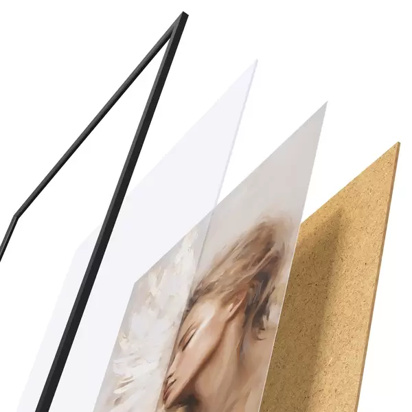 Das Poster besteht aus einem Rahmen, Plexiglas, einem gedruckten Bild und einer Rückwand aus Spanplatten. Dank der Halterungen auf der Rückseite kann das Poster sofort an die Wand gehängt werden.