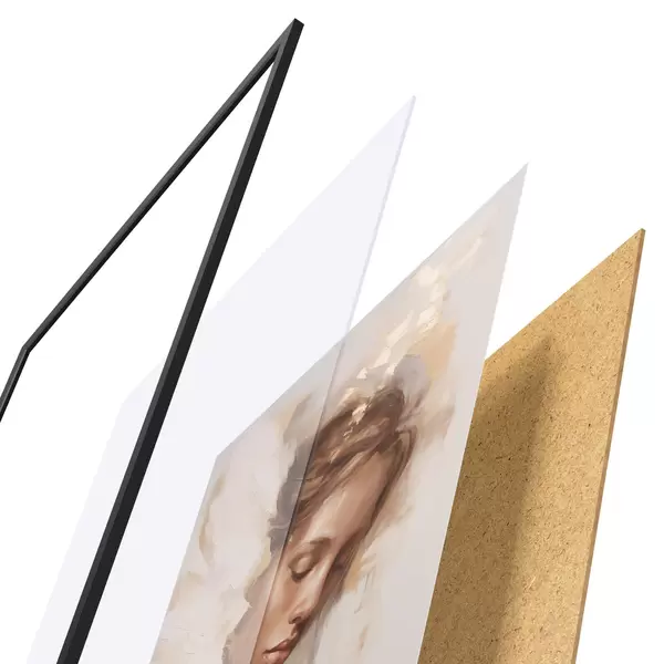 Das Poster besteht aus einem Rahmen, Plexiglas, einem gedruckten Bild und einer Rückwand aus Spanplatten. Dank der Halterungen auf der Rückseite kann das Poster sofort an die Wand gehängt werden.