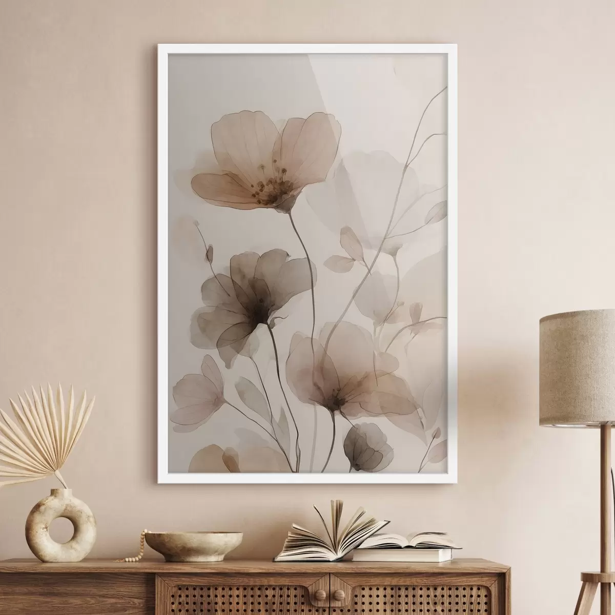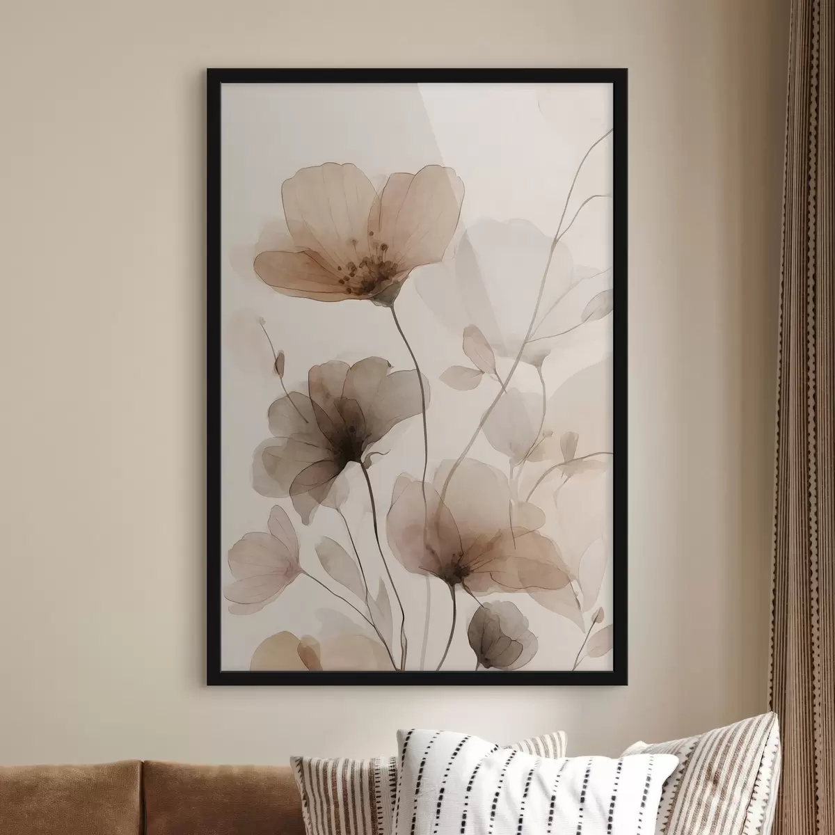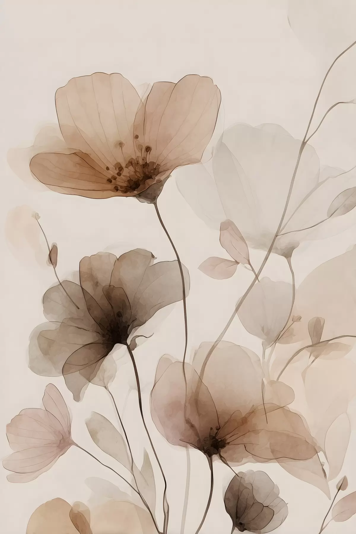 Poster Blumen in Aquarell in Brauntönen f49006