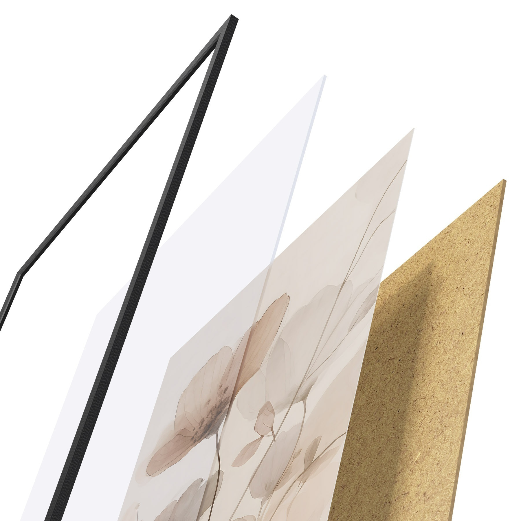 Das Poster besteht aus einem Rahmen, Plexiglas, einem gedruckten Bild und einer Rückwand aus Spanplatten. Dank der Halterungen auf der Rückseite kann das Poster sofort an die Wand gehängt werden.