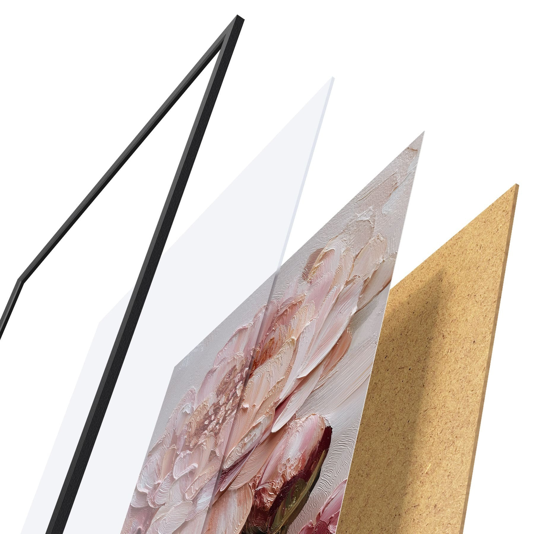 Das Poster besteht aus einem Rahmen, Plexiglas, einem gedruckten Bild und einer Rückwand aus Spanplatten. Dank der Halterungen auf der Rückseite kann das Poster sofort an die Wand gehängt werden.