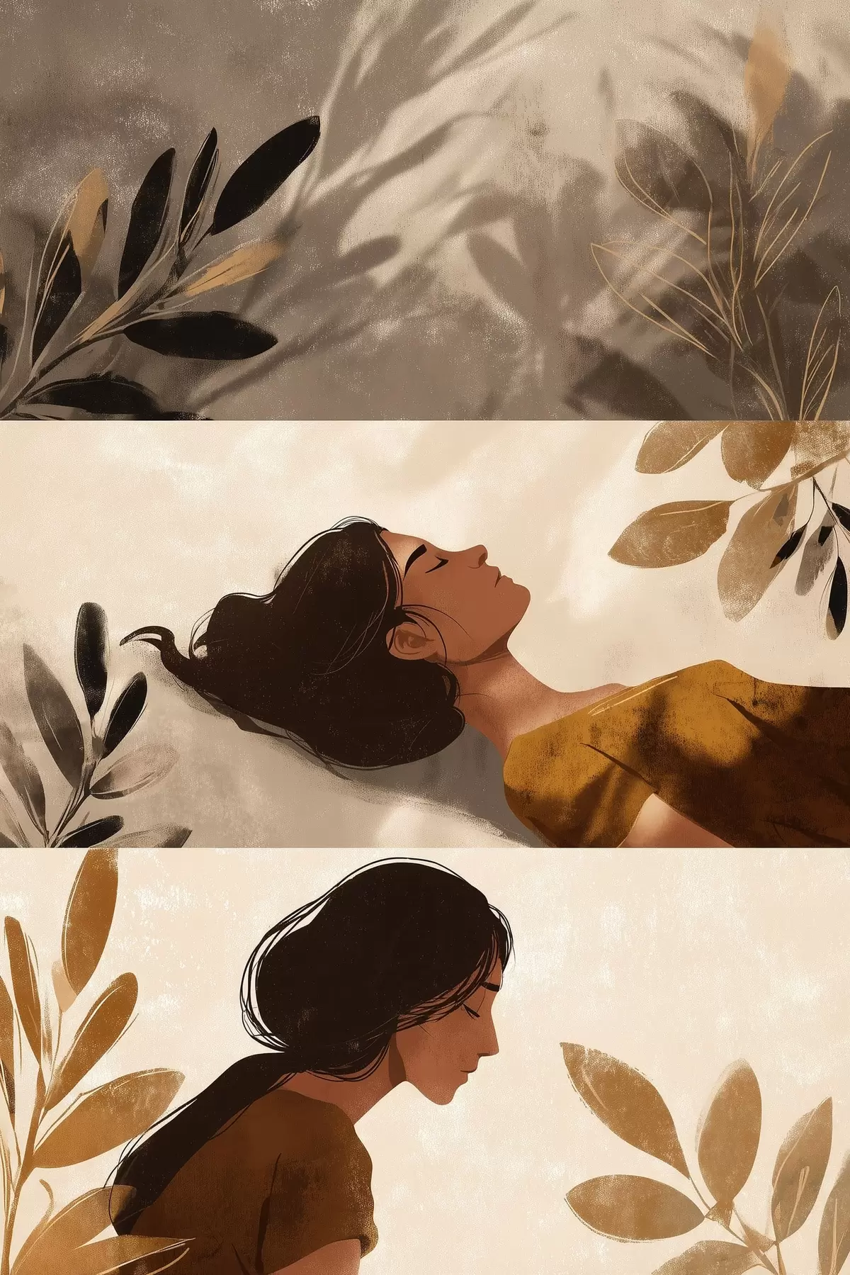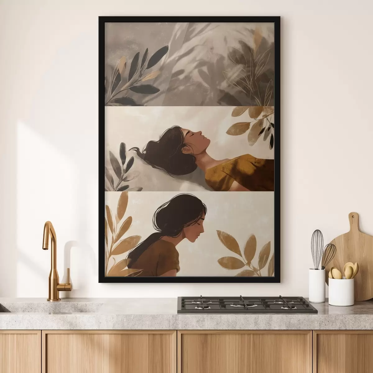 Poster Dreiteiliges Gemälde „Frau mit Blättern“ f49018