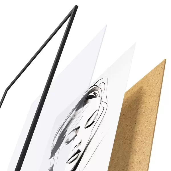 Das Poster besteht aus einem Rahmen, Plexiglas, einem gedruckten Bild und einer Rückwand aus Spanplatten. Dank der Halterungen auf der Rückseite kann das Poster sofort an die Wand gehängt werden.