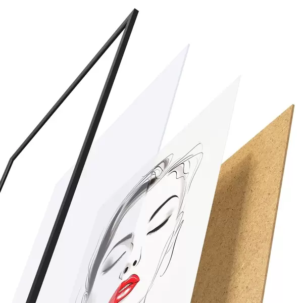 Das Poster besteht aus einem Rahmen, Plexiglas, einem gedruckten Bild und einer Rückwand aus Spanplatten. Dank der Halterungen auf der Rückseite kann das Poster sofort an die Wand gehängt werden.