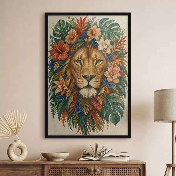 Poster Löwe mit Blumen f49037