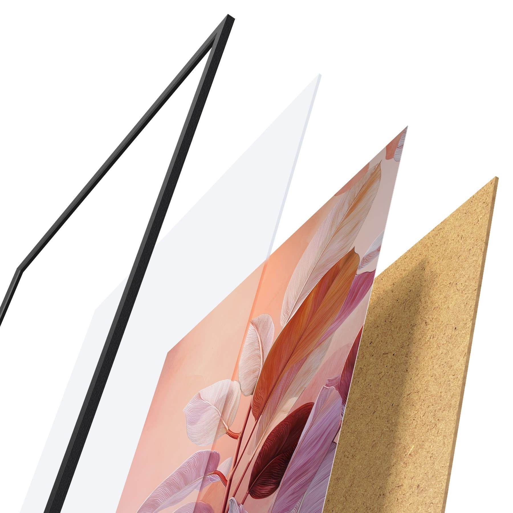Das Poster besteht aus einem Rahmen, Plexiglas, einem gedruckten Bild und einer Rückwand aus Spanplatten. Dank der Halterungen auf der Rückseite kann das Poster sofort an die Wand gehängt werden.