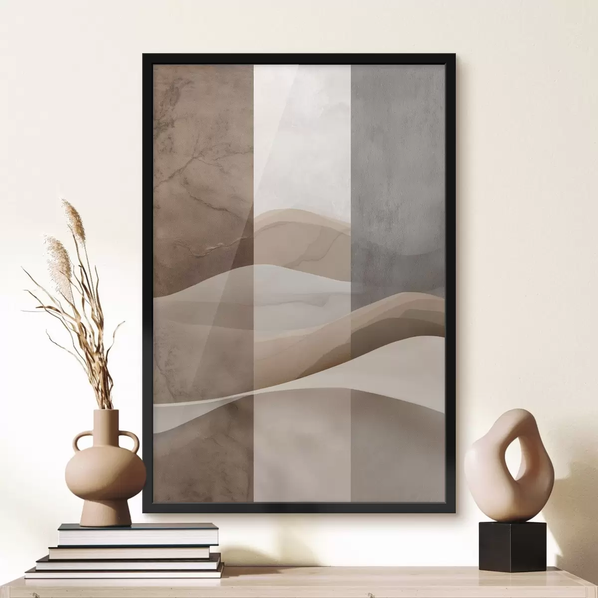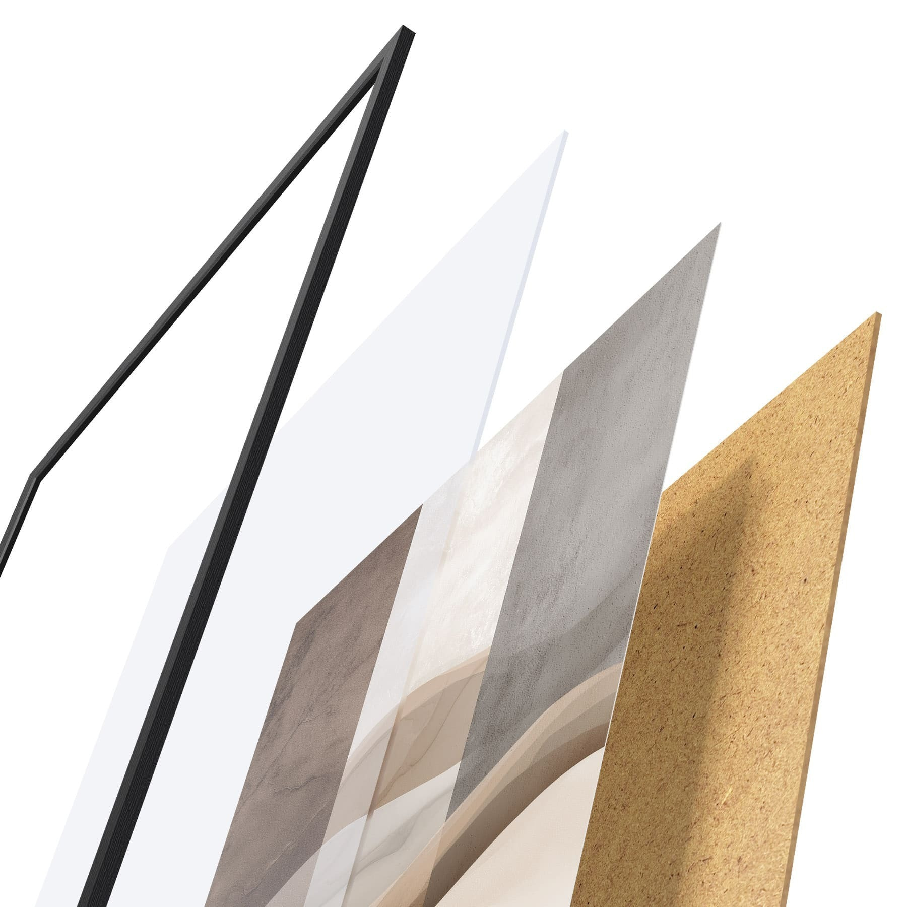 Das Poster besteht aus einem Rahmen, Plexiglas, einem gedruckten Bild und einer Rückwand aus Spanplatten. Dank der Halterungen auf der Rückseite kann das Poster sofort an die Wand gehängt werden.