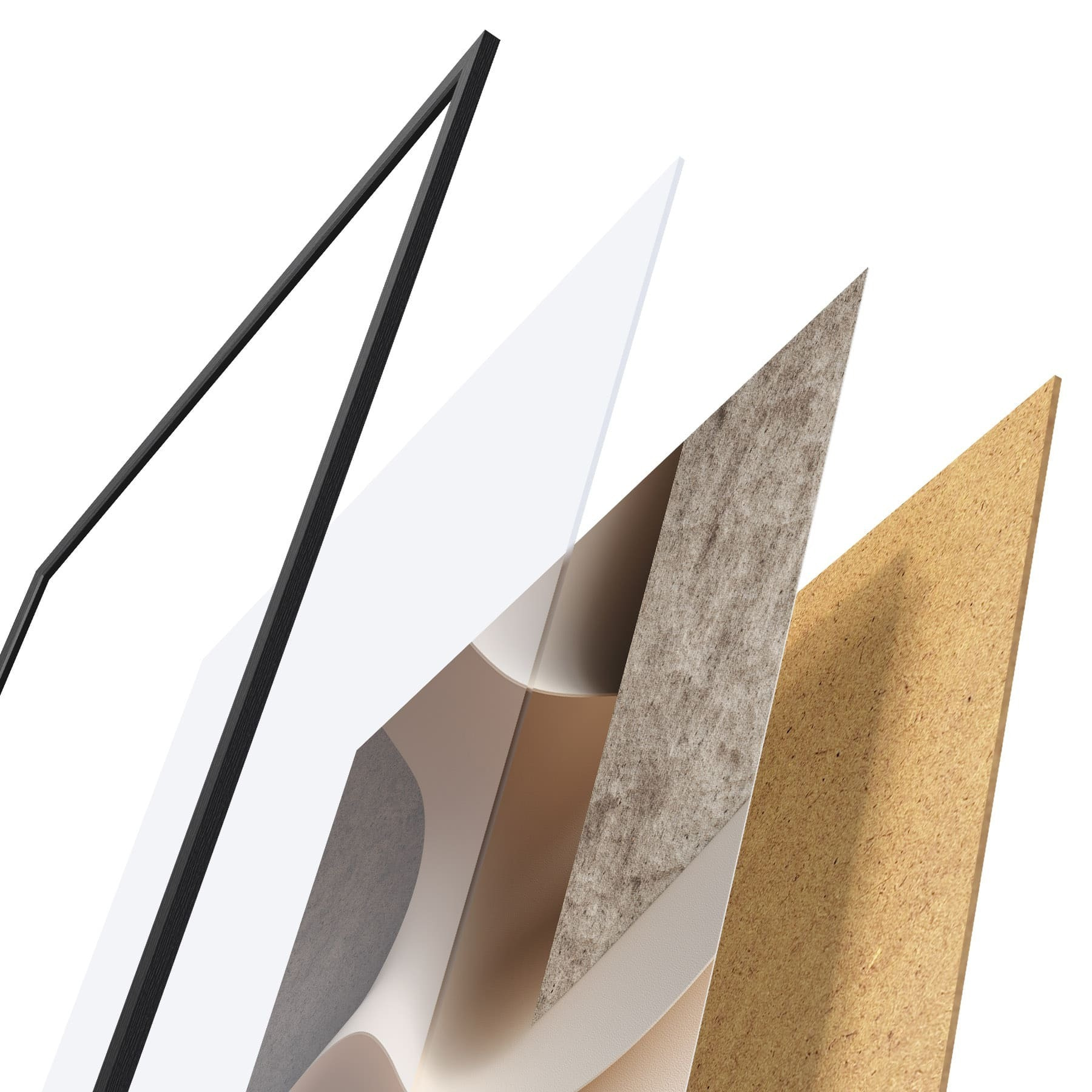 Das Poster besteht aus einem Rahmen, Plexiglas, einem gedruckten Bild und einer Rückwand aus Spanplatten. Dank der Halterungen auf der Rückseite kann das Poster sofort an die Wand gehängt werden.
