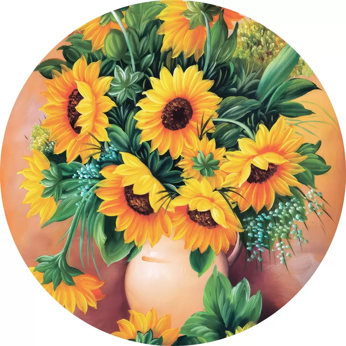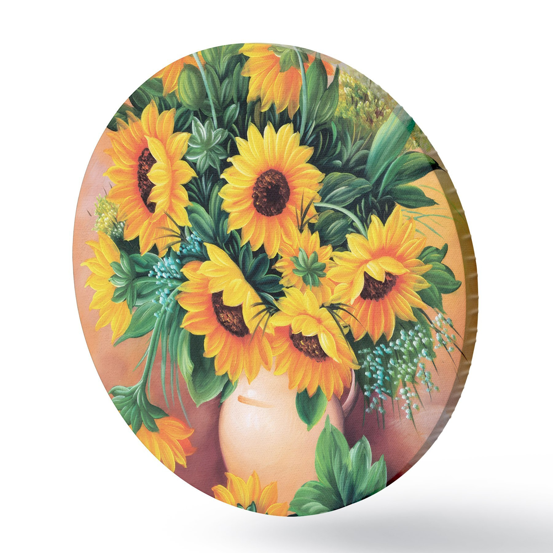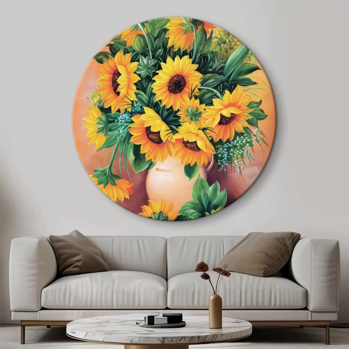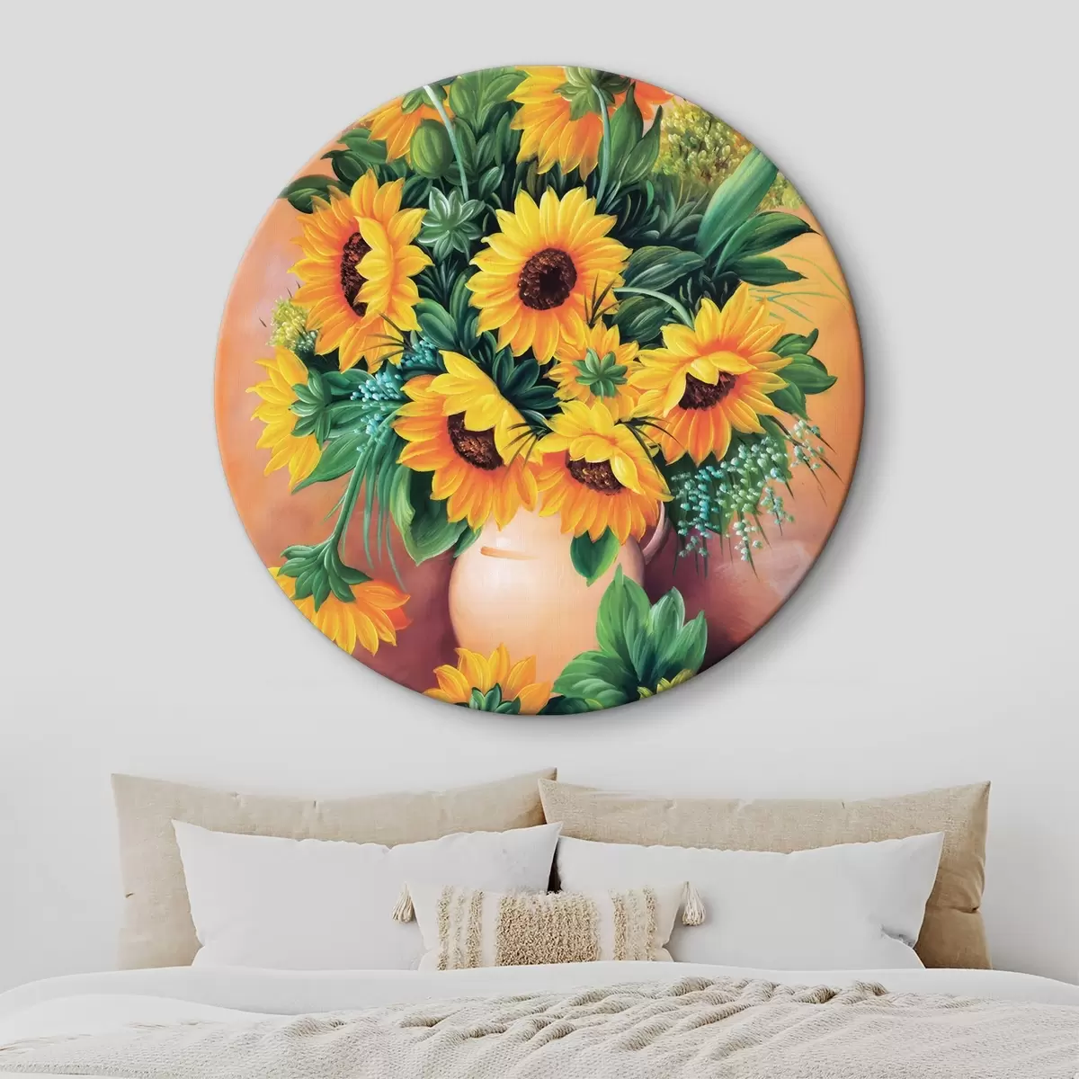 Runde Gemälde Sonnenblumen in einer Vase r00860
