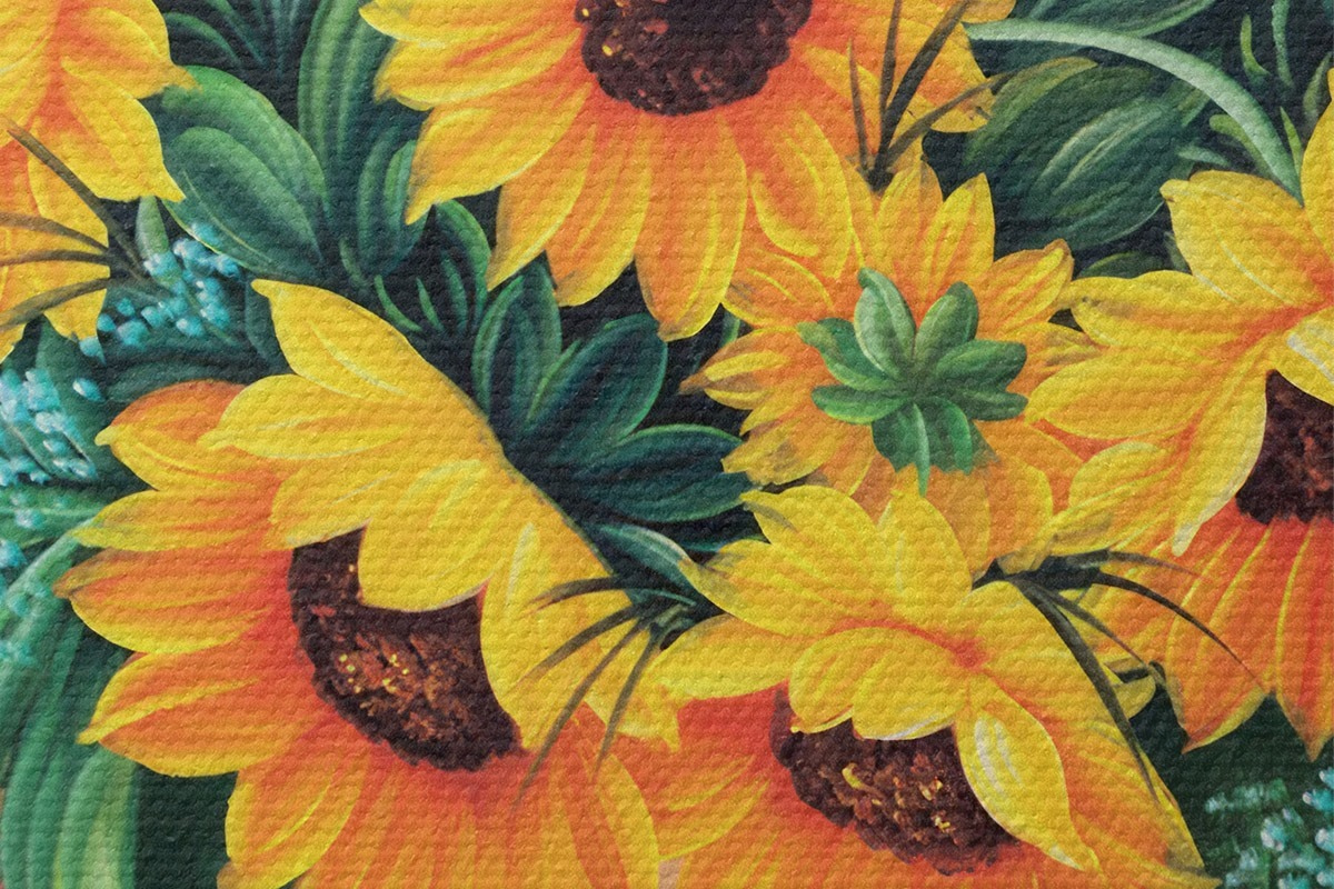 Drei Materialtypen stehen zur Verfügung: Economic Canvas - ein dichtes und haltbares Material für den Digitaldruck, identisch mit Malerleinwand, wasserfeste Oberfläche, realistische Wiedergabe von Details, mittelkörniges Material. Premium Canvas - die Textur ähnelt der einer Malerleinwand (verwobene kleine Fäden). Weiche, detaillierte Wiedergabe des Bildes auf einer matten Oberfläche. Eco-Premium - hochwertiges Gewebe aus 100% Baumwolle. Dank der natürlichen Baumwollfasern ist das Material langlebig und verschleißfest. Hervorragende Farbwiedergabe und Detailtreue.