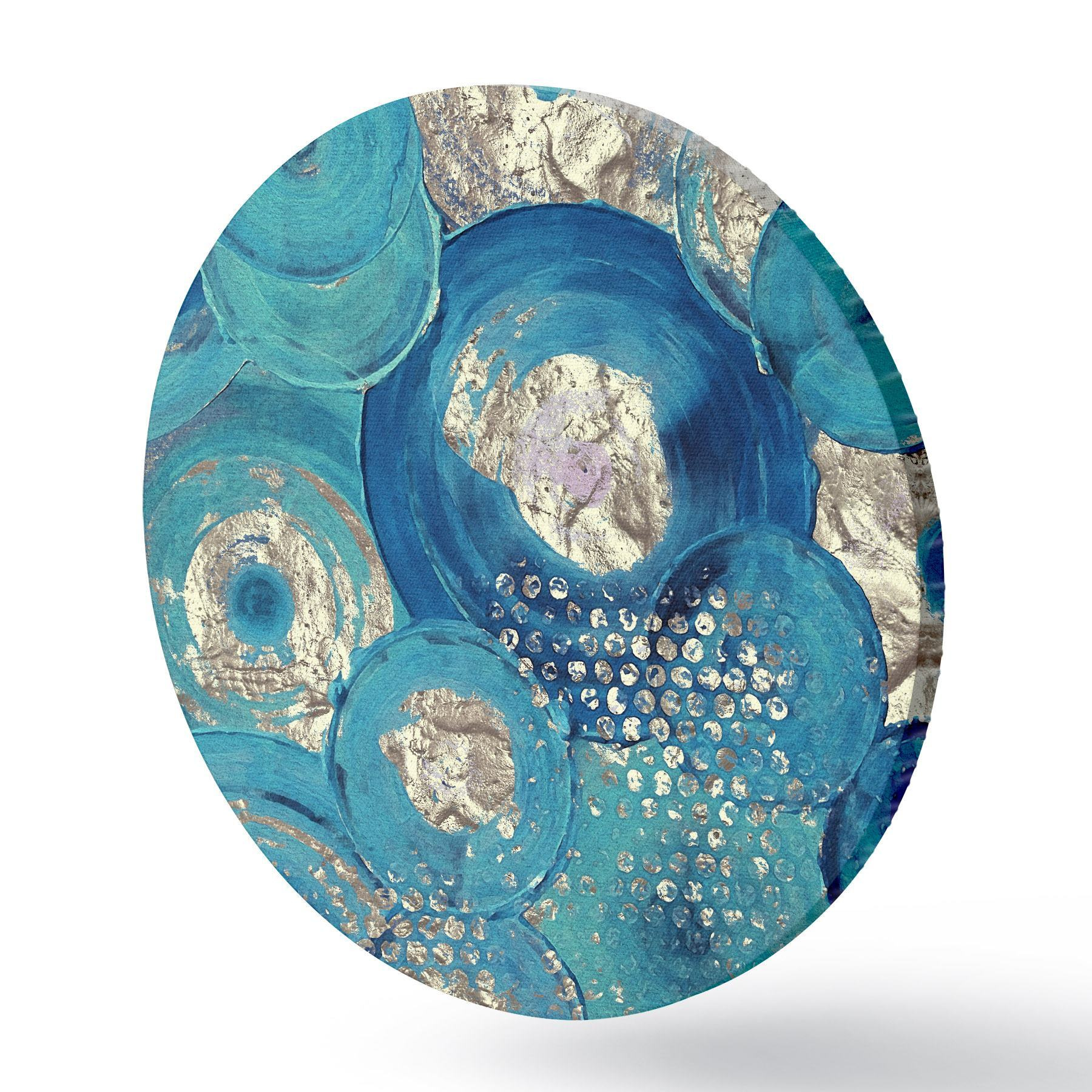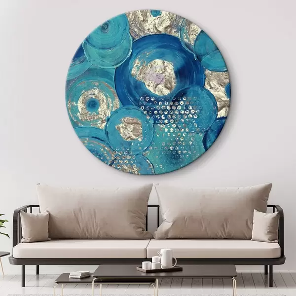 Runde Gemälde Azurblaue Kreise mit Punkten, Ölfarben r01035